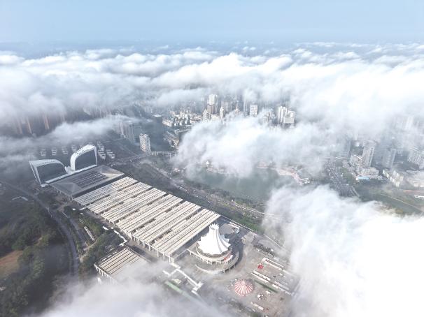 2月14日,大雾下的南宁国际会展中心雄姿。记者宋延康摄