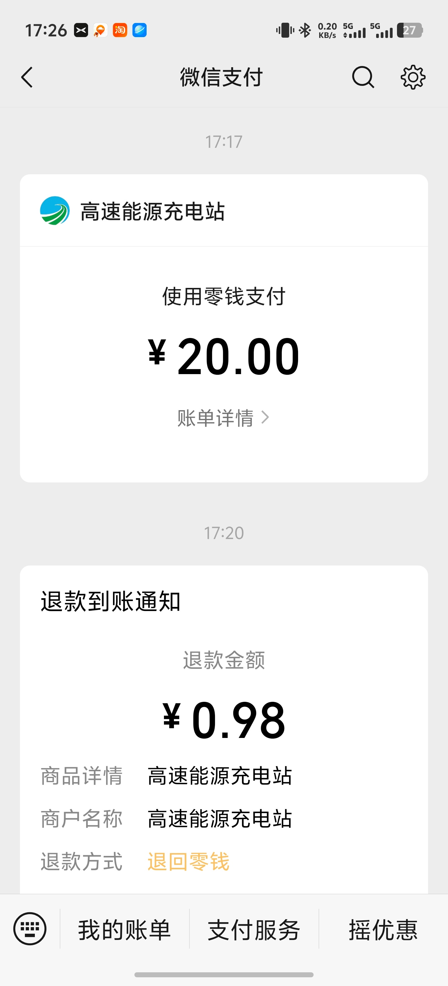 我老婆开了一百多公里累了又进了服务区,换我开车,我看有理想的5C超充我又试了一下,有278kw,也是充了3分钟花了我20元,我赶紧拔了,我还是晚上到我老家充6毛钱一度的吧哈哈,1.7元快三倍价格舍不得充。小鹏P7的兼容性也可以,华为,理想的超充都充的挺快的。