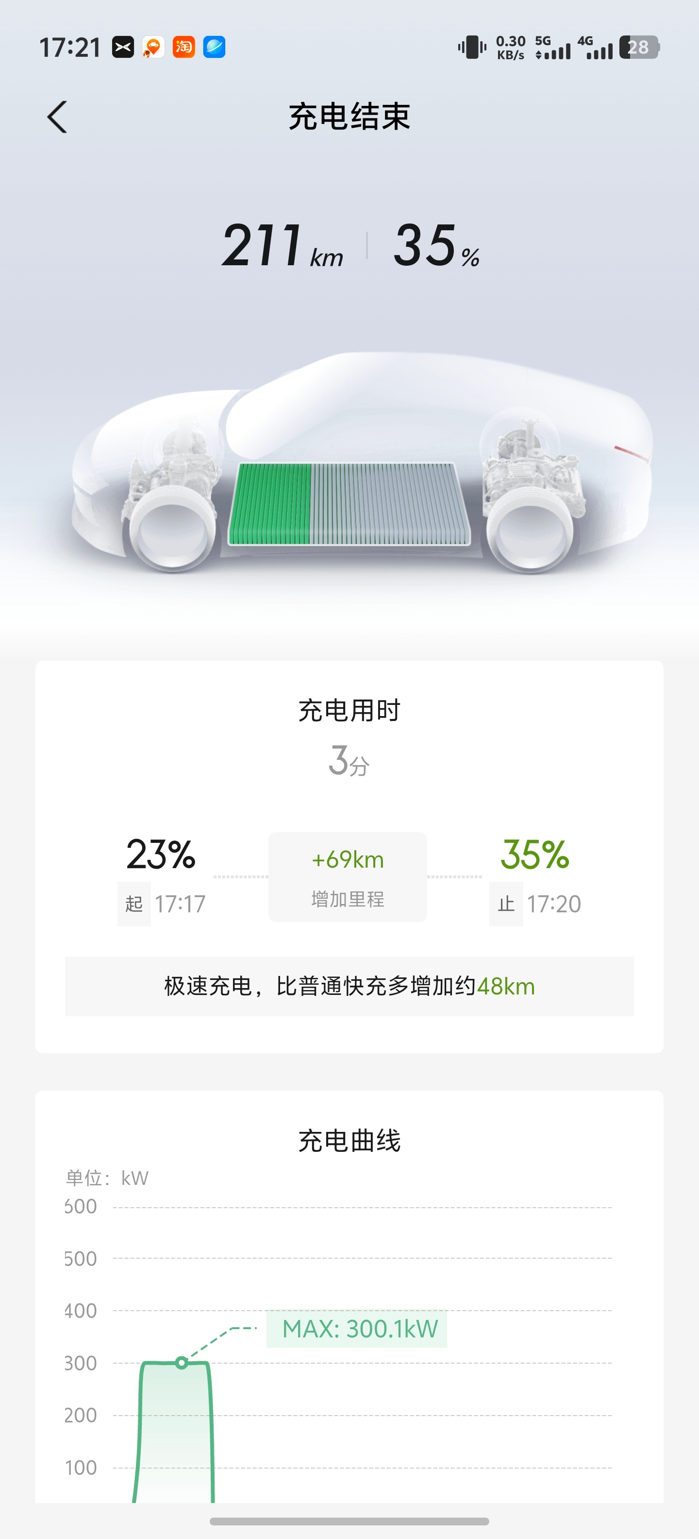 取完东西以后我们开车从宁德回我老家,换我老婆开车我休息,第一个服务区我老婆上厕所,我看有华为液冷超充,试了一下充电速度,最高能到300kw,非常快,充了3分钟就把我预付的20元花完了,1.7一度,有点贵舍不得充多哈哈。