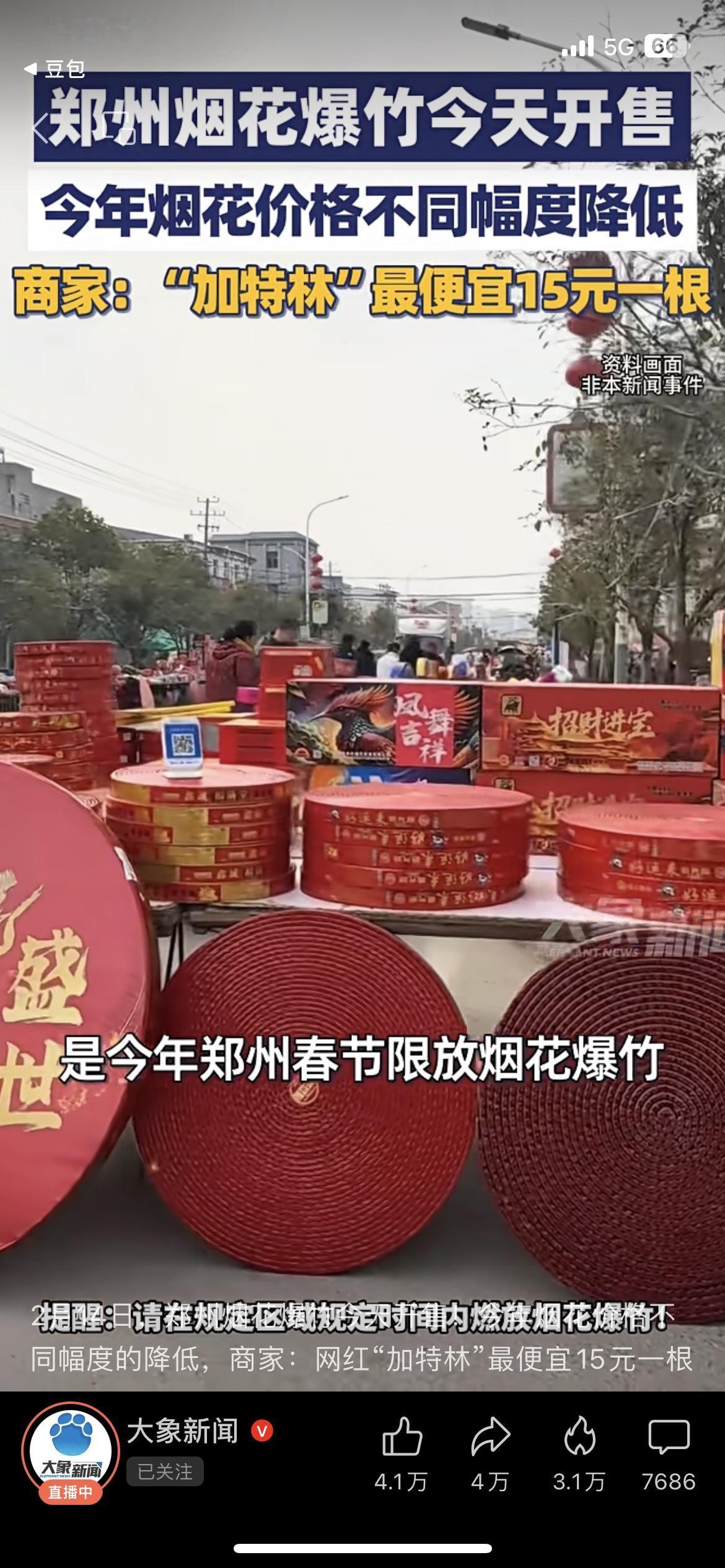 郑州想放烟花的朋友注意了!烟花爆竹今天正式开售,价格比往年降了! 商家说,今年网红加特林最便宜15块钱一根,其他烟花也都有不同幅度的降价,划算不少。 最后给大家提个醒:一定要去正规销售点买合规产品,必须在规定区域、规定时间燃放,别违规给自己惹麻烦! 你那边的加特林卖多少钱一根? 郑州烟花 春节烟花 过年
