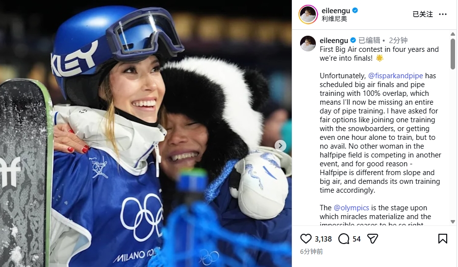 直播吧02月15日讯米兰冬奥会自由式滑雪女子大跳台预赛,谷爱凌总分第2晋级决赛,但该项目决赛时间与U型场地技巧(U池)的首个训练日完全重合,谷爱凌在社媒上抨击了国际雪联的这一安排。