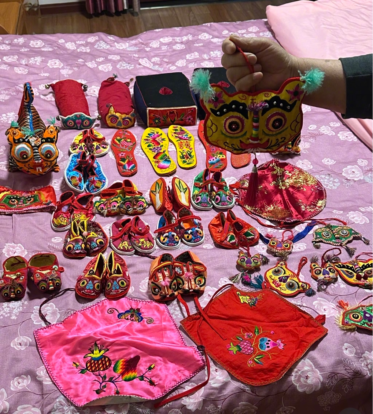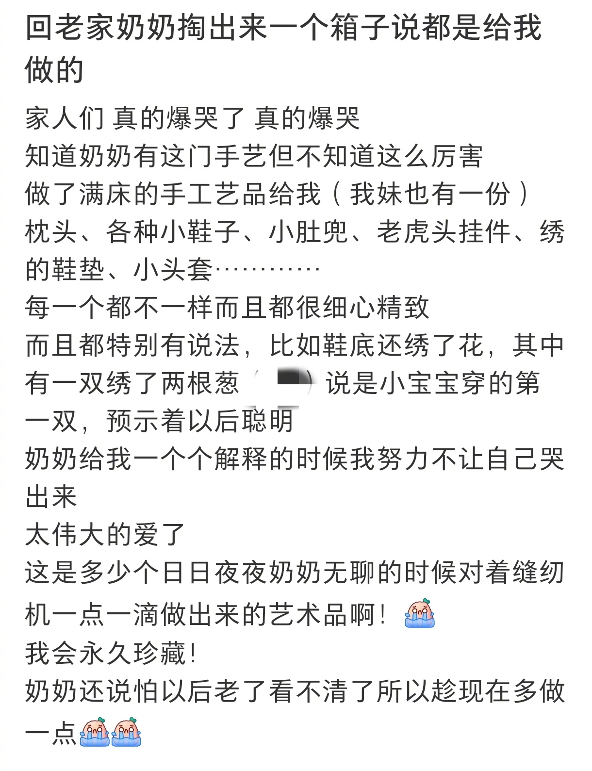 奶奶做了满床手工艺品给我