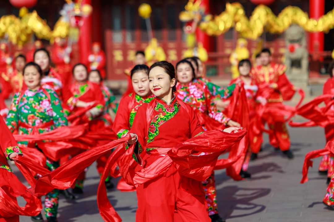 2月14日,第二届“打起手鼓舞起龙”乌鲁木齐社火展演活动在新疆乌鲁木齐市人民公园举行,社火队员在表演。