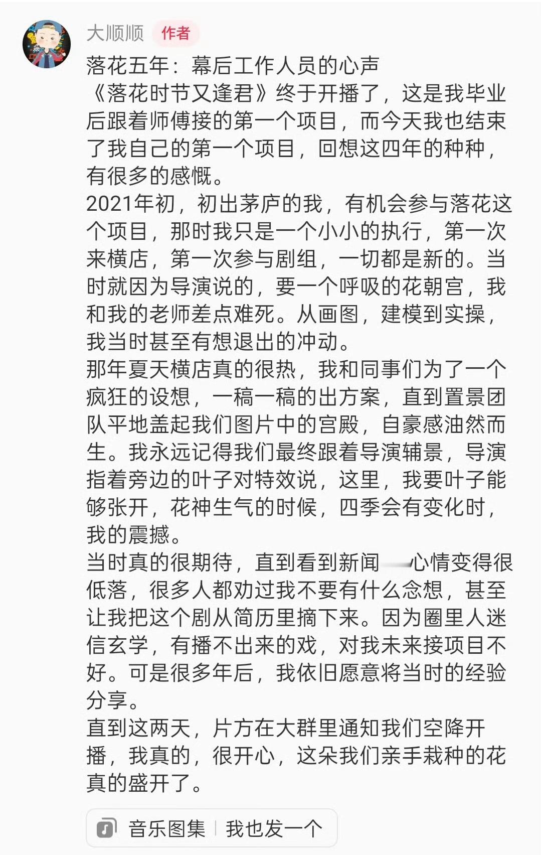 当知道是重磅传统文化节目且跟花神有联系的时候真的很开心,那种开心是没办法用言语表达的。我们落花时节又逢君没有被遗忘,刘学义跟护花使者们的坚持跟努力没有被遗忘,这么多年,所有的付出都是值得的。