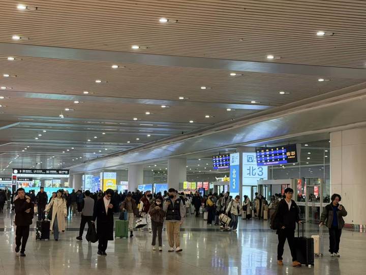 春节前的杭州火车东站,年味已悄悄蔓延,出站口的电子屏滚动着到站信息,拖着行李箱、拎着年货的旅客络绎不绝。刚放假的程序员小李,穿着轻便的羽绒服,正踮着脚往人群里张望,身边的妻子小陈时不时抬手理理被风吹乱的头发——他们要接的,是坐一个多小时高铁从衢州来的公婆。“结婚三年,每年都是我们往老家跑,今年总算赶在春节前把爸妈接来杭州了!”小李眼睛一直盯着出站口,语气里藏不住高兴,“这几天特意把工作收尾完,就盼着爸妈过来,好好陪他们过个年。”