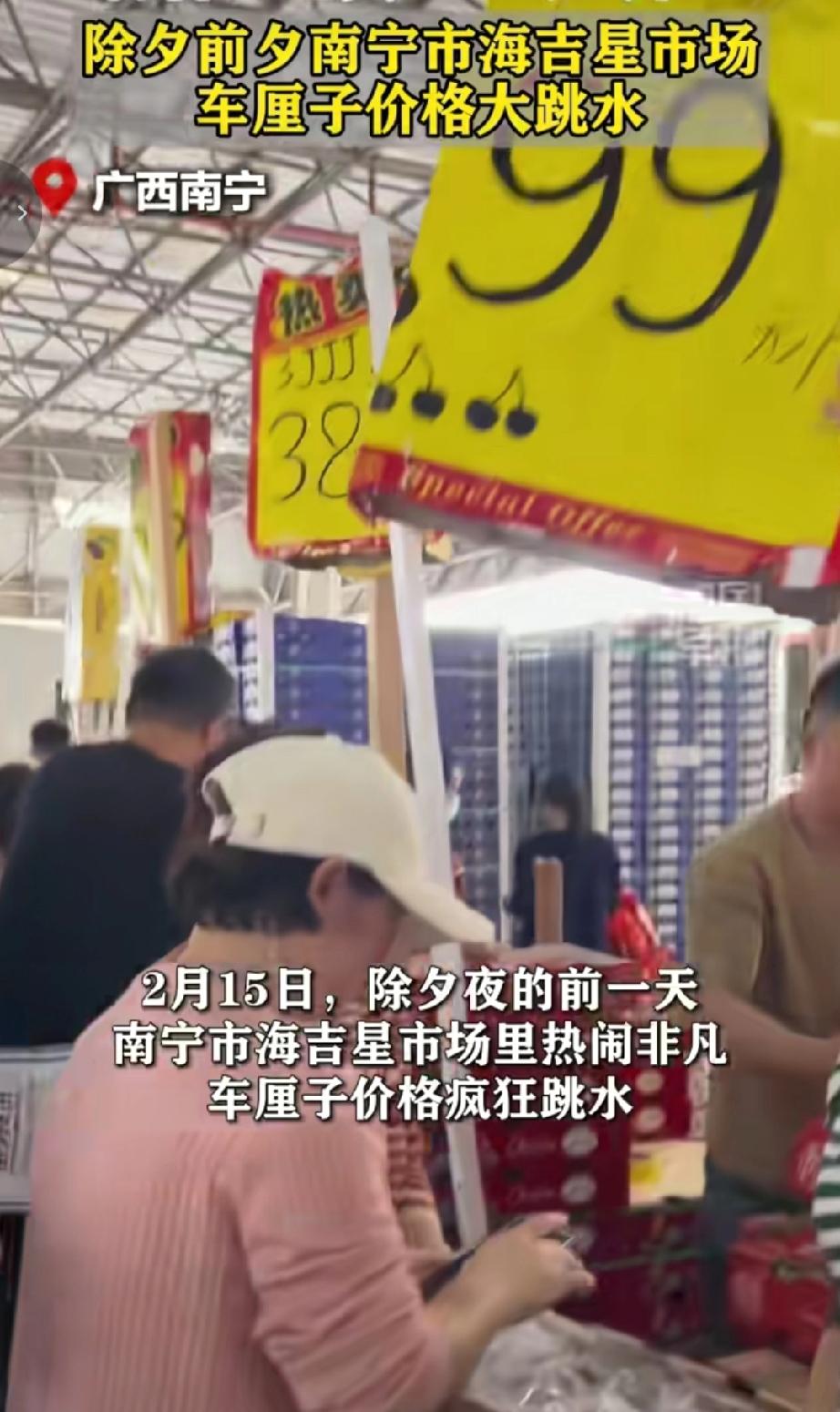 今年除夕前夕海吉星市场会推出各类年货特价活动,9.9元/斤的特惠活动多集中在水果、精品蔬菜或部分水产冻品等品类,现场还会有批量采购的额外优惠,价格会随当日供需小幅波动。星智利车厘子批发均价约30元/斤,4J规格2.8斤装低至100元;本地沃柑批发价1.10-1.80元/斤,砂糖橘1.20-2.70元/斤,榴莲38.00-45.00元/斤,龙眼7.00-8.00元/斤。(来源于@南国早报 )