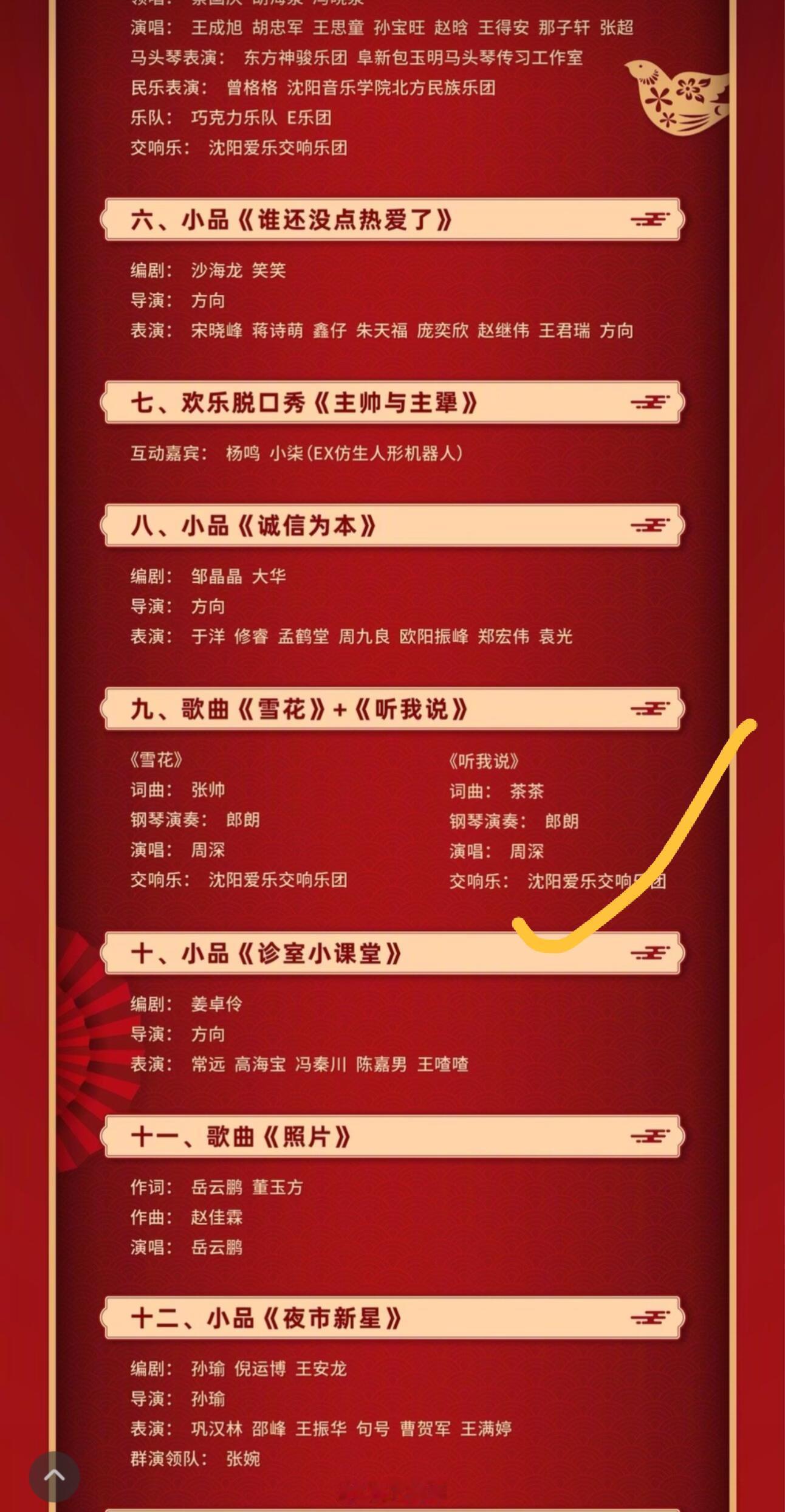 辽宁春晚周深是第九个和十八个节目辽宁春晚是今天哦,节目单已经出来了周深第九个和郎