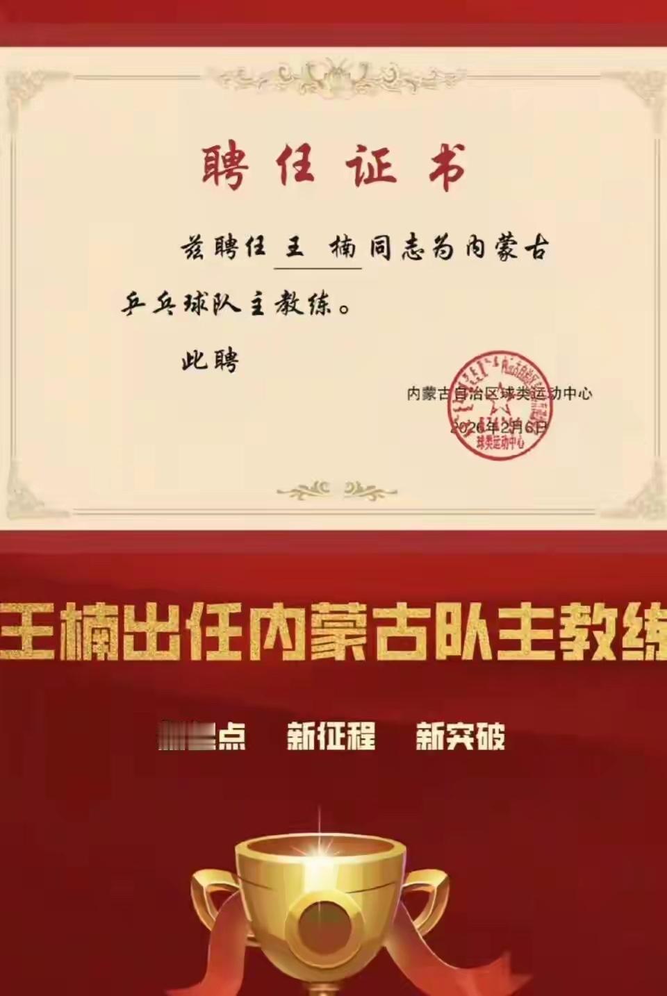 近日,前乒乓球奥运冠军王楠在个人短视频平台上公布了一则消息,那就是她即将出任内蒙