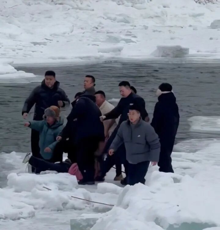 整个救援过程也就是短短几分钟时间,事后回想,其实他们几个人在救援过程中也随时有滑落冰河的危险,只是当时没有注意到这个点。