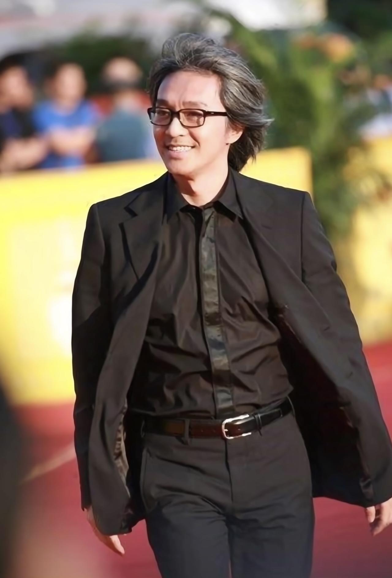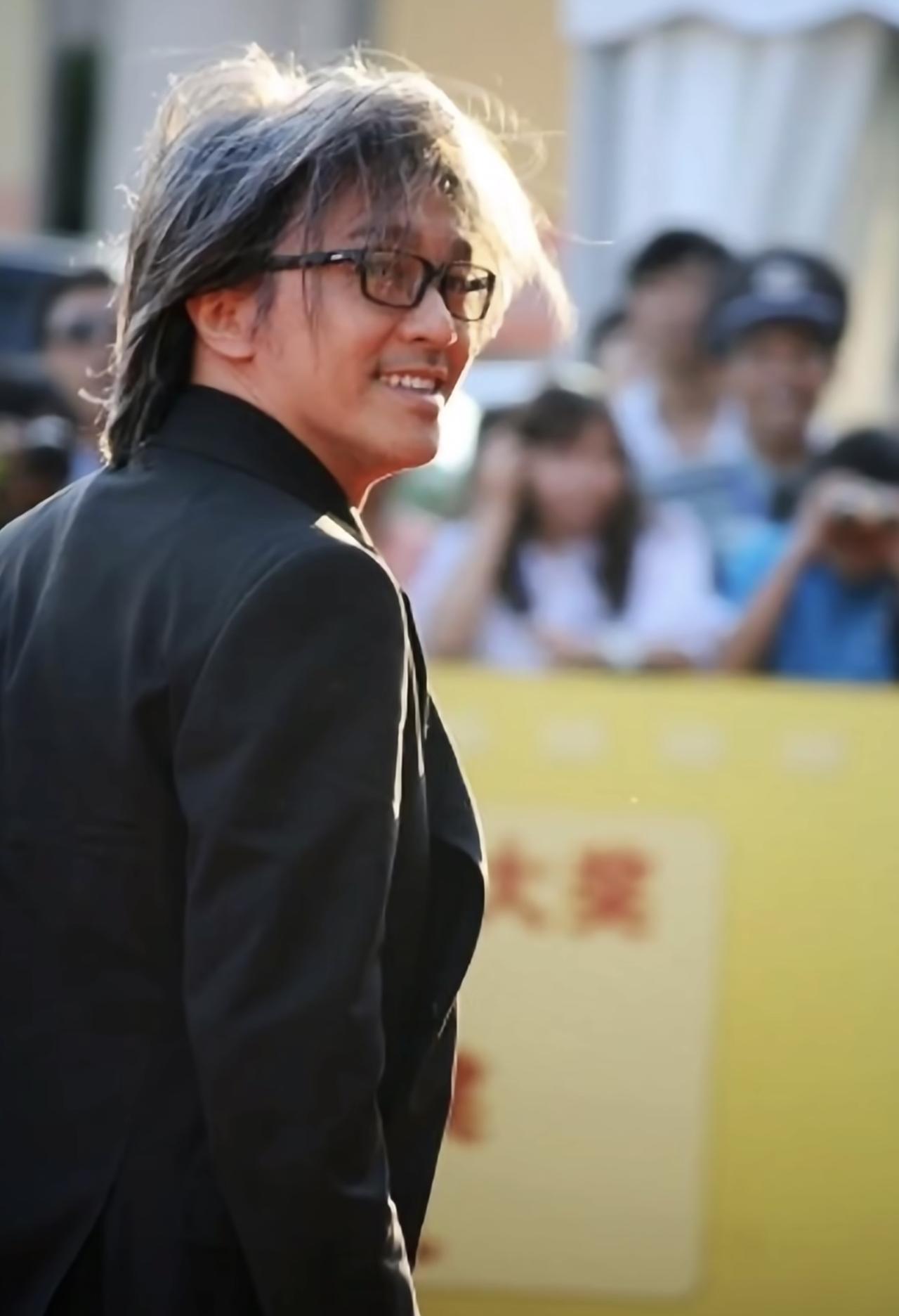 周星驰早期走红毯照,当时的风有点大,吹乱了他的头发,他在风中双手抱拳,跟大家打招呼。 2009年,周星驰已经47岁了,他戴着一副黑框眼镜,头发有些花白,但意气风发,笑容很温暖。周星驰