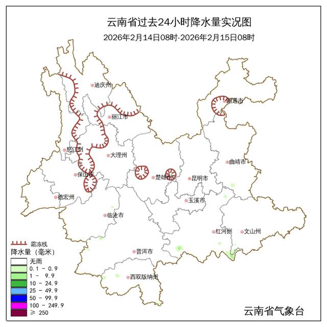 2月15日(廿八)至16日(除夕):迪庆州北部阴有雨夹雪或小雪,怒江州北部阴有小雨,昭通市、曲靖市、文山州、红河州南部阴天间多云局部有小雨,其他地区晴。