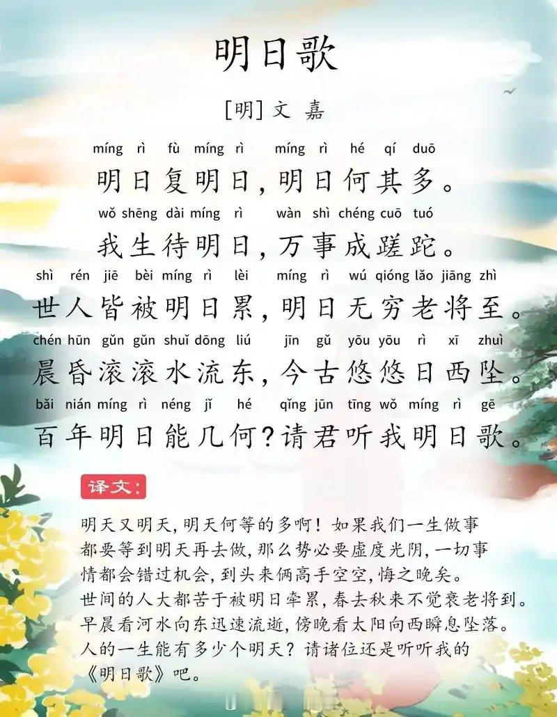 这首《明日歌》想必大家都读过、背过吧。这是钱福的作品。