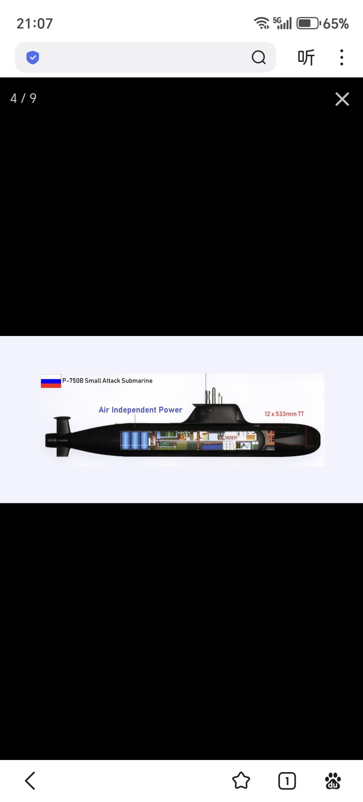 孔雀石”中央船舶设计局的P-750B小型近岸多用途潜艇方案,其排水量为1400吨,采用高度自动化设计,艇员为18至20人,主要作战目的为近海防御及特种渗透。该潜艇的艇艏可选配12根533毫米鱼雷发射管(不可再装填)或6枚533毫米鱼雷发射管(不可再装填)+小型特战渗透潜艇舱。