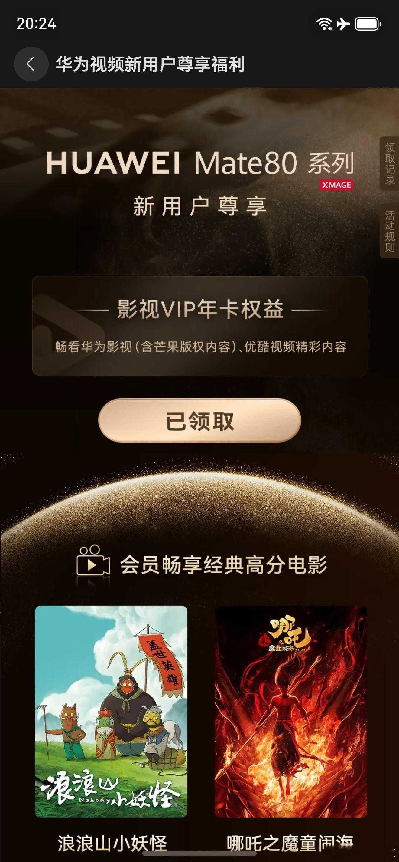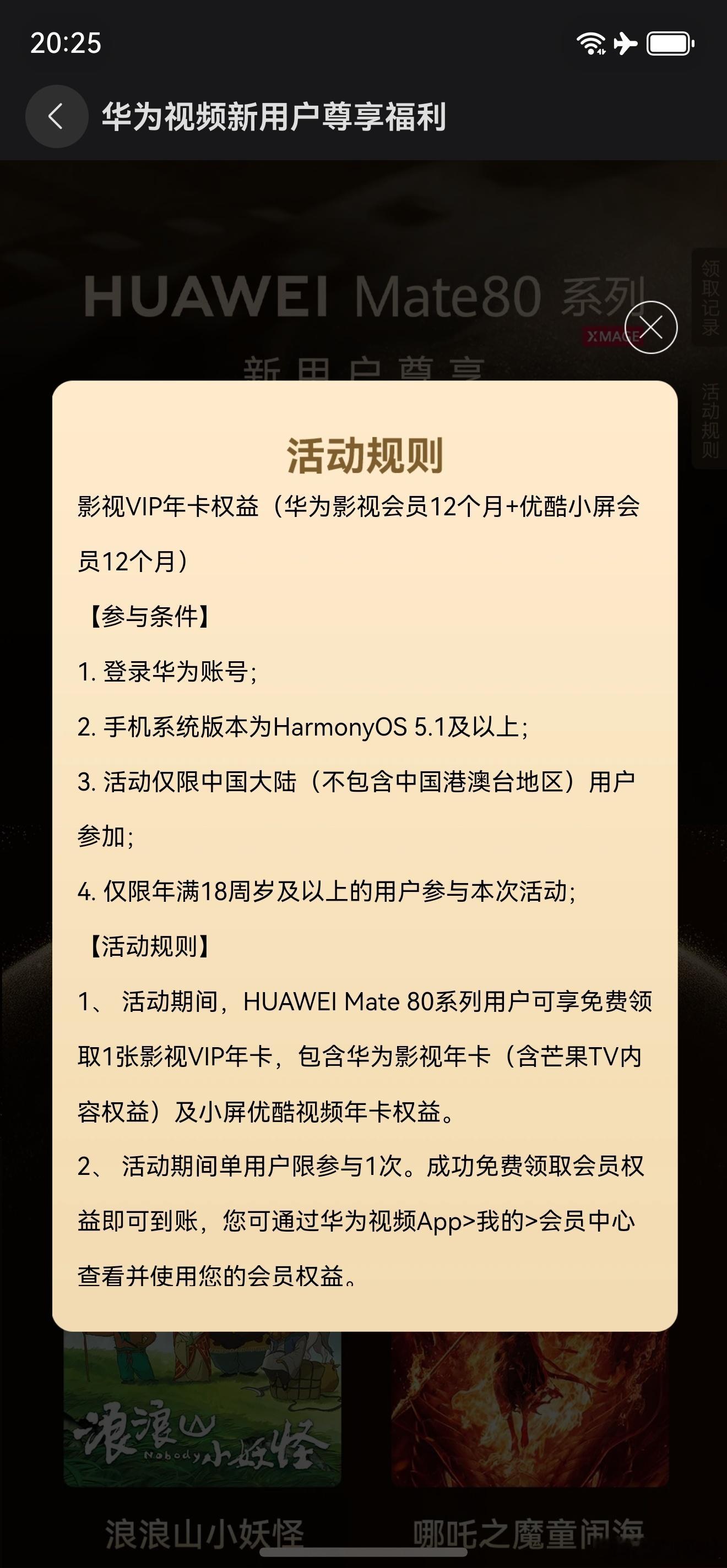 鸿蒙越用越香是真的!华为Mate80系列和MateX7用户可以在华为视频里面0元领取影视VIP年卡,美滋滋啊,我的华为影视会员已经到2032年了!😎