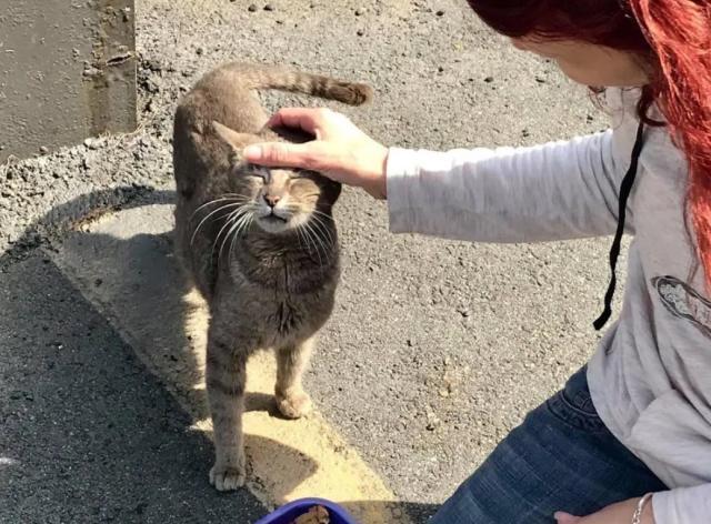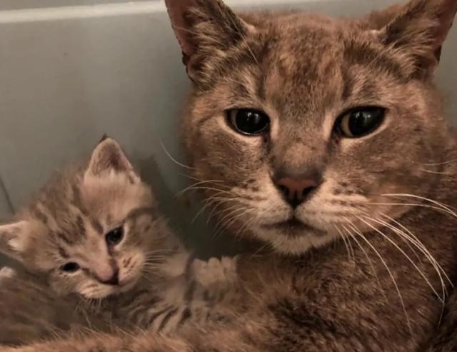 这只流浪猫咪被人们发现时身边还有好多只刚出生不久的小猫,很难想像在野外食物紧缺的