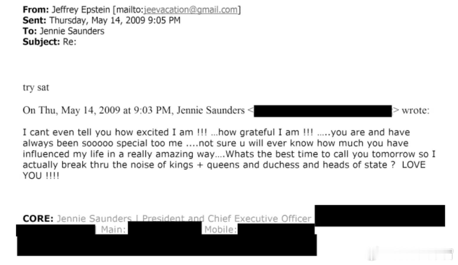 2009 年 5 月,珍妮企业 (Jennie Enterprise) 的老板写信给他,表达了他“以非常奇妙的方式影响了我的生活”,并在信末写道“爱你!!!”