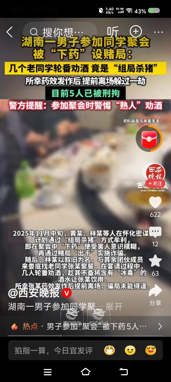王熙凤毒设相思局,老同学挖坑遭刑拘—— 据报道,某团伙“组团杀猪”:找一名同学聚会,酒中放冰du,计划等他意识模糊后让他入赌局,几个人“出千”实施诈骗。所幸,受害人药效发作后提前离场,骗局未得逞。团伙5人遭刑拘。 点评: 王熙凤看了这些人,都想踢一脚:“你们是真毒!居心险恶如此!如果人家中毒而不测,你们一个个得赔命!穷疯了?”