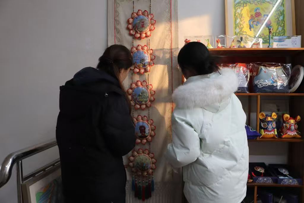 队员们拜访了传承人李兆梅工作室,聆听技艺讲解、亲手体验香包制作,并用专业设备记录针法细节,留存珍贵数字档案。在传承手工艺文化馆,团队深入探讨鲁绣年轻化路径,通过剪辑短视频、编制宣传手册、开展校园分享会与社区体验活动,让非遗技艺触达更多年轻人。