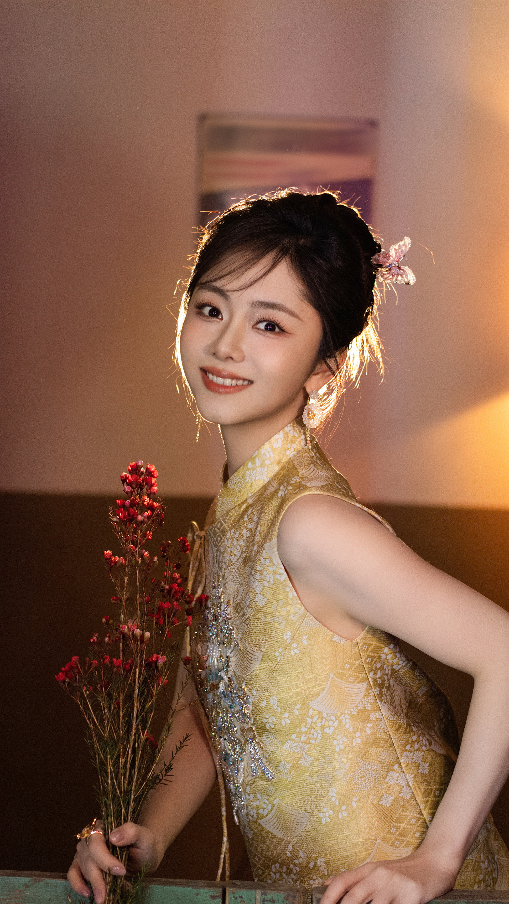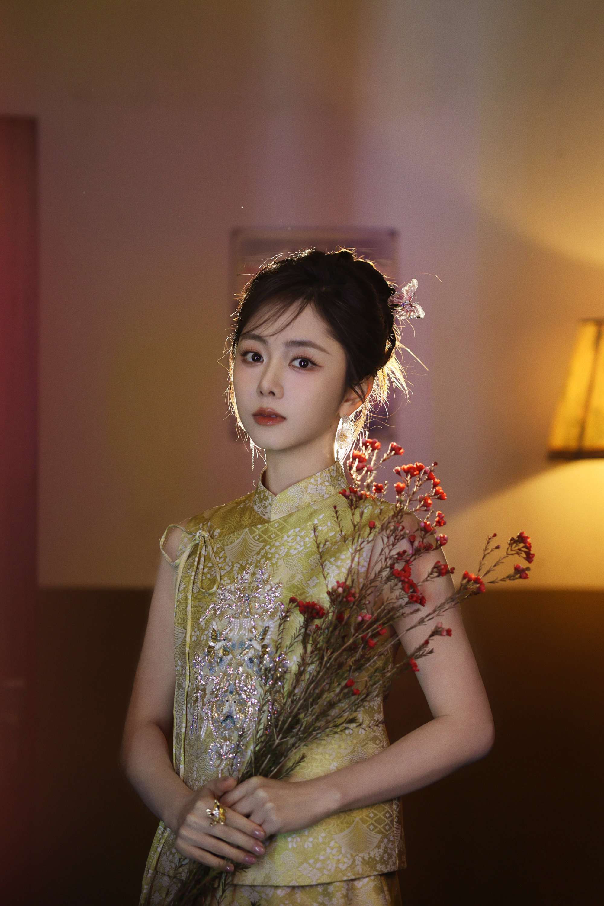 谭松韵|下一站春晚新春造型温柔又喜庆。珠纳福,绣线缠祥。披一袭锦绣,迎丙午新岁谭