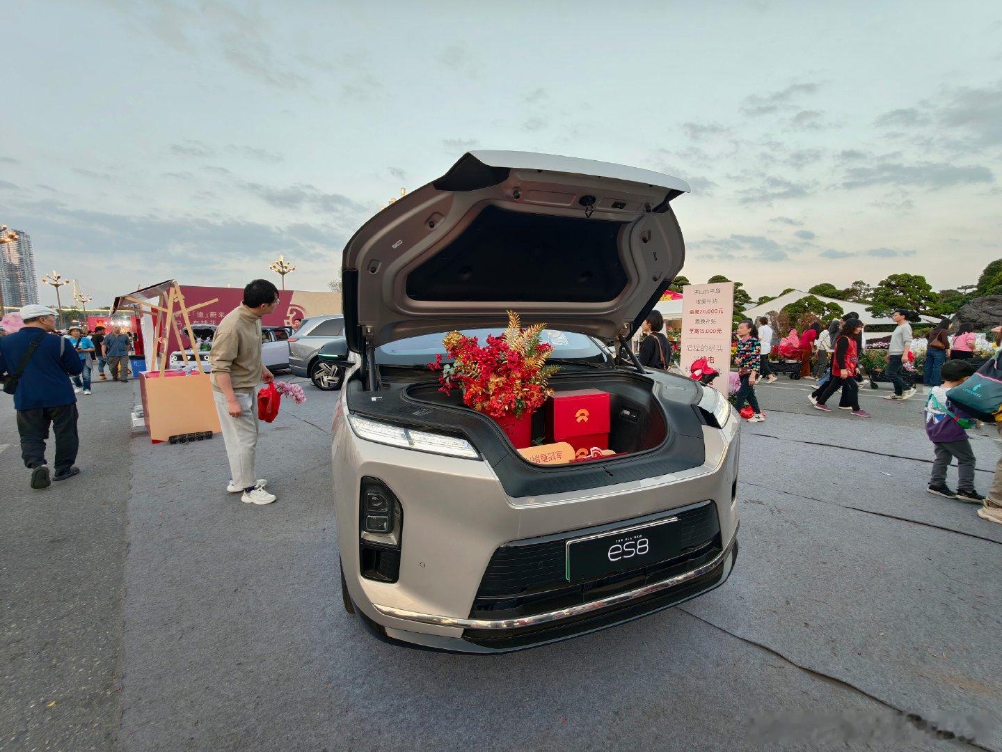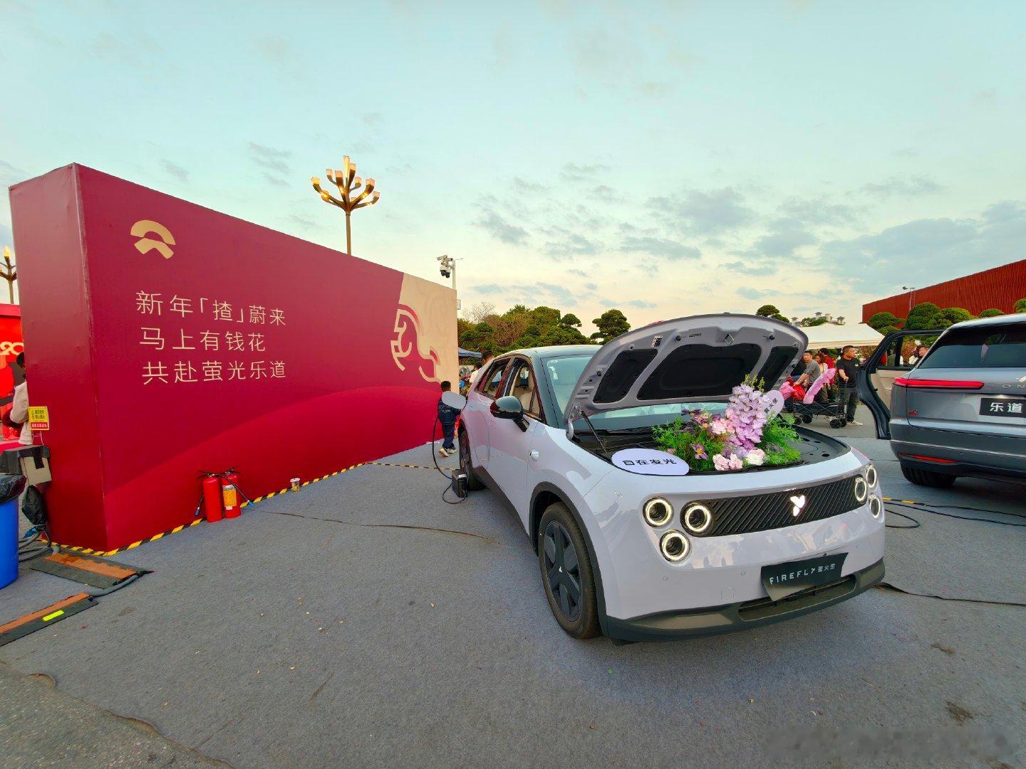 我就感觉每个花市里一定有车展就像广州花市一定有广汽集团,来到佛山顺德陈村新春花市,见到了蔚来、乐道、萤火虫。真挺好的,小孩在车上看电视,都进入了忘我状态,大人趁机在旁边专心买花