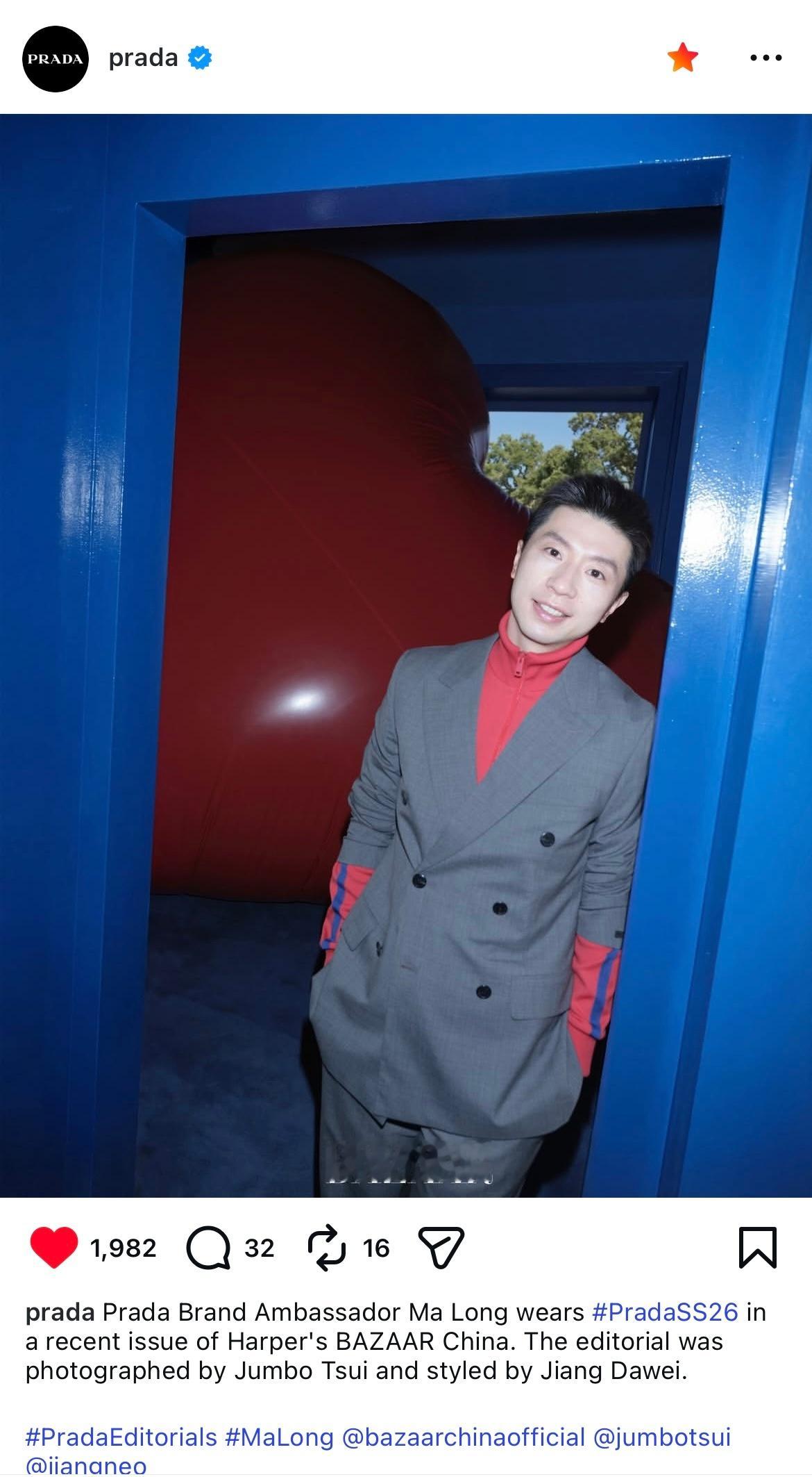 prada代言人马龙 Prada的ins和x认领了时尚芭莎二月刊的拍摄就这个内外网同步全球代言人待遇爽。