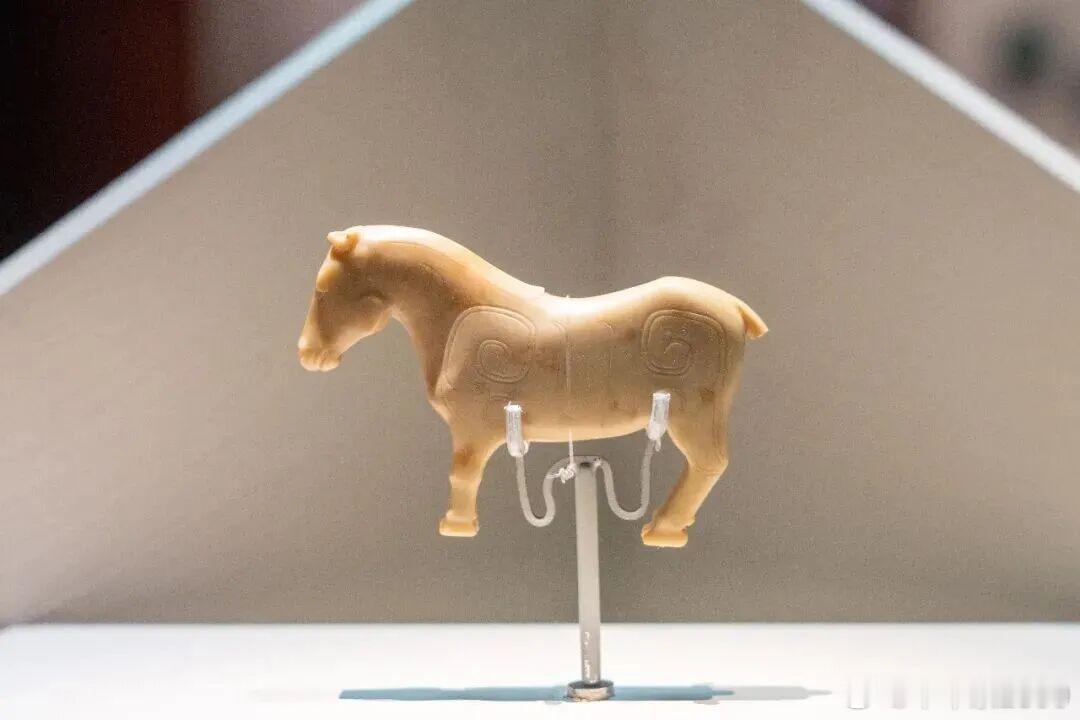 博物馆里的马元素邮票上的它是奔腾的,但此刻在山西博物院的展柜里,它站得很稳。这匹小马1993年出土于山西曲沃晋侯墓地63号墓。墓主人是晋穆侯的次夫人,一位名副其实的资深玉器“收藏家”——她带入地底八百多件玉器,而这匹玉马是其中之一。山西故事