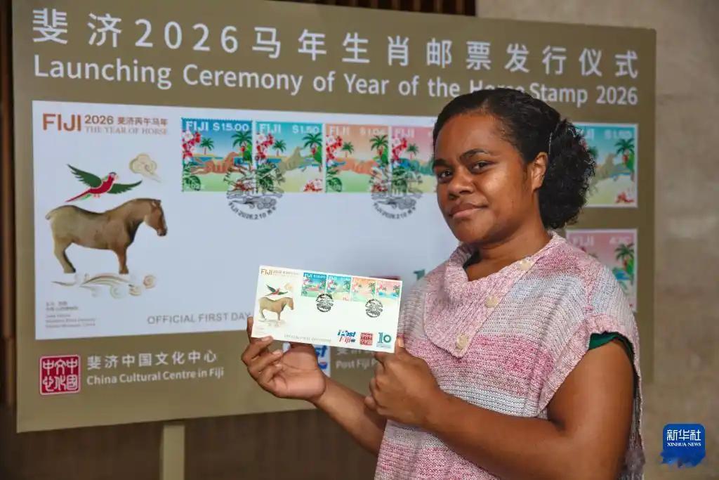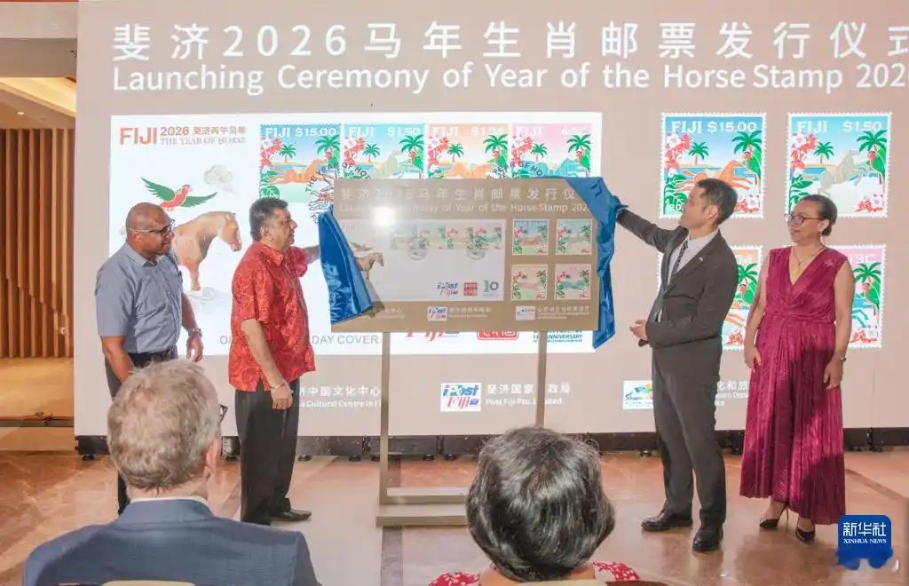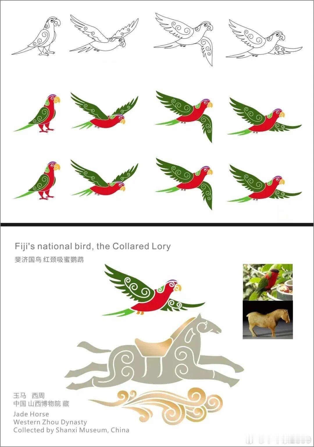 山西西周玉马跃上斐济生肖邮票该套邮票由山西传媒学院高鹏教授设计,创作元素基于西周玉马形象,同时融入斐济国鸟绿领鹦鹉与国花水屋美丁花,生动诠释中斐两国的文化共鸣。马年大吉