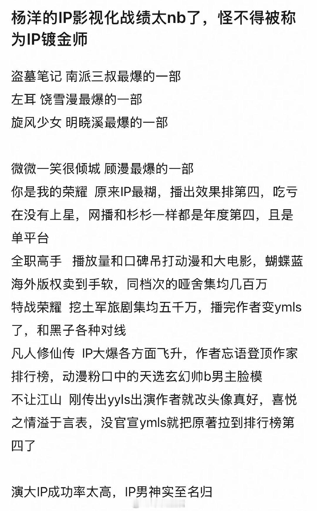杨洋一直是现偶男主天菜啊,主演的现偶剧没有不🔥的。可惜帅哥现在拍的少了。又有新称号啦,ip镀金师