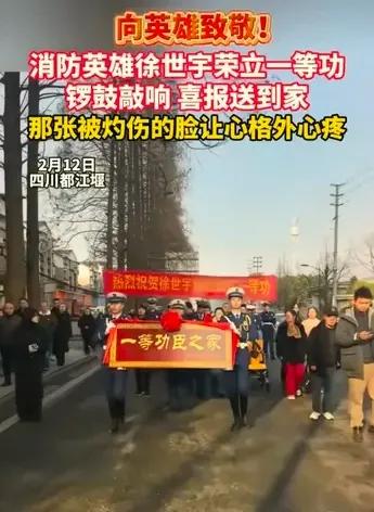 消防英雄徐世宇荣立一等功,四川都江堰消防员徐世宁在2022年“湖南新田救火”中全身90%重度烧伤,面目全非,双目失明,手脚截肢。在医院里康复治疗了两年,经历日日夜夜的痛苦。这样的一等功看着真让人心酸,又让人心生敬佩! 守护万家的消防英雄,他们的付出让我们格外懂得安宁的珍贵。