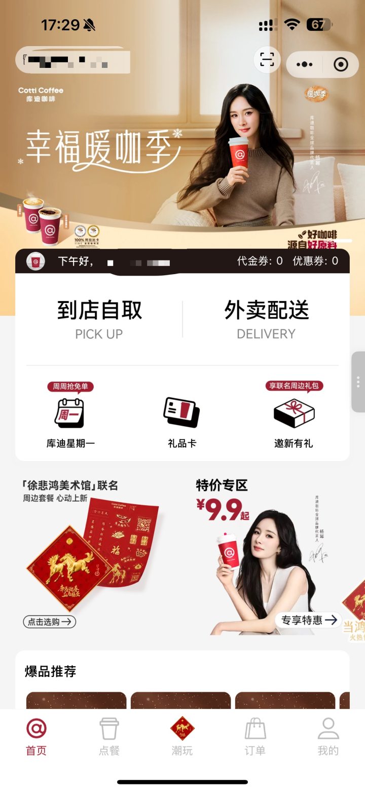 库迪“全场9.9元不限量”活动,目前在首页上已经不见