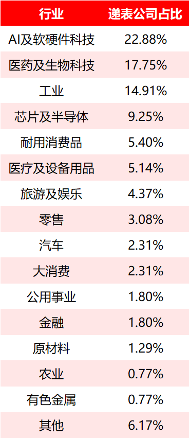 2026港股IPO最新累计递表公司超400家,目前正在递表中的公司,按照行业大类分布:AI及软硬件科技与医药及生物科技这两大主线科技赛道,一马当先!芯片及半导体、工业、大消费紧随其后,这代表着中国科技在全球市场的领先地位!
