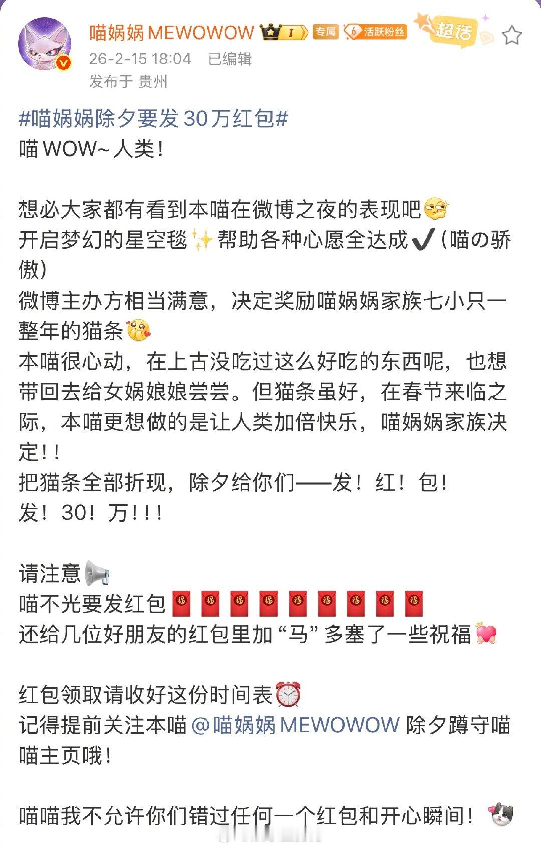喵娲娲红包送完你的送你的 全网最大方的猫出现了猫条虽好,但人类的快乐更重要!喵娲娲用一整年的猫条换30万红包,这波操作我先冲了,已经蹲好啦😼