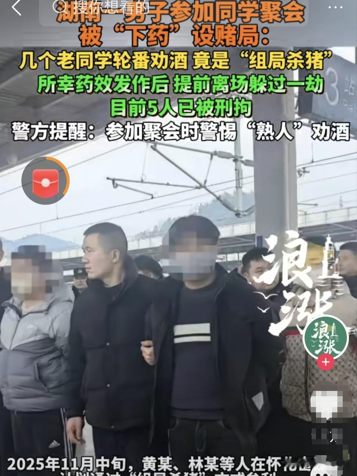 专挑熟人下手!湖南娄底,一男子突然接到老同学打来的电话,热情邀请他吃饭叙旧。男子为人实在,又重感情,想都没想就答应了下来。可等他赶到饭局,当场就觉得不对劲。一桌子人里,除了邀请他的老同学,剩下的全是陌生面孔。吃饭的时候,这群人还轮番上阵,一个劲地劝酒。男子没喝几杯就开始头晕发飘,这感觉根本不是正常喝醉,心里顿时咯噔一下,意识到事情不简单。他强装镇定,找了个借口偷偷溜了出来,脱离危险后第一时间就报了警。等到警方把事情调查清楚,真相摆在面前时,男子当场吓得后背发凉,想想都觉得后怕。 湖南娄底的张先生,参加个同学聚会,碰上了一件让他想想都后怕的事。 前不久,张先生突然接到一个很久没联系的老同学电话,对方特别热情,说专门来娄底看他,要约着吃饭叙旧。 张先生热情好客,人实在,又重感情,想都没想就答应了,还以为是一场暖心的同学重逢。 他把手头的事安排好,准时赴约,可到了饭店包间,他立马觉得不对劲。 一桌子人,除了约他的老同学,剩下的全是陌生面孔,老同学也没好好介绍,说都是一起来的朋友,没有外人。 张先生也是生意人,天天在外面喝酒应酬,既然来了,那有走的道理,一回生二回熟,既来之,则安之。 刚坐下,这帮人就开始轮番敬酒,一个比一个热情,不停劝酒。 老同学更是异常热情,还提出喝完酒,玩几把,助助兴。 张先生来不及拒绝,跟着喝了没几杯,突然头晕眼花、浑身发软。 他可以说是久经沙场,酒量不错,感觉跟平时喝醉不一样,他当场就反应过来,这酒里肯定有问题。 张先生也不是一般人,他想趁着还算清醒,提出有事要离开。 老同学和其他人根本不放手,还一个劲劝酒,他心里明白,这架势要想走不容易。 他强装没事,又喝了两口,借口去洗手间,赶紧跑出饭店,迷迷糊糊上了一辆出租车,确认安全后,第一时间就报了警。 等警方把事情查清楚,张先生彻底吓出一身冷汗。这根本不是聚会,而是精心布好的局。 原来,他的老同学林某,早就和黄某等人预谋骗钱。 林某听说张先生混的不错,又有情有义,就惦记他口袋里的钱,以老同学的身份接近他。 他们提前在怀化商量好,以叙旧为幌子约人出来,喝酒时偷偷在酒里做手脚。 等受害人意识模糊了,就拉去赌钱,然后出老千,把他腰包掏空。 警方根据张先生描述,怀疑可能被下药,给他抽血化验,结果和大家想的样。 好在张先生警惕性高,提前跑掉了,这才没让他们得逞。 如果张先生不多留个心眼,被灌醉了,掏空钱财,可能还会成瘾,后果不堪设想。 2026年2月12日,警方一举将这个5人团伙全部抓获,目前都被刑事拘留,案子还在进一步处理。 这件事也给所有人提了个醒,春节期间,出门聚餐一定要小心,离开过视线的酒水千万别喝。 不管是陌生人还是老同学,过分热情劝酒都要多留个心眼。 一旦感觉头晕、不舒服,立刻离开并报警。人心隔肚皮,保护好自己,比什么都重要! 《刑法》第266条 诈骗罪:诈骗公私财物,数额较大的,处三年以下有期徒刑、拘役或者管制,并处或者单处罚金;数额巨大或者有其他严重情节的,处三年以上十年以下有期徒刑,并处罚金;数额特别巨大或者有其他特别严重情节的,处十年以上有期徒刑或者无期徒刑,并处罚金或者没收财产。 林某等5人以同学叙旧为幌子,隐瞒下药、设局、出千的真相,目的是非法占有张先生的钱财,完全符合诈骗罪。 他们在酒中做手脚,让受害人意识模糊,再通过控制赌局输赢骗取财物,属于典型的诈 骗。 因张先生及时脱身,诈骗未得逞,属于犯罪未遂,但仍要承担刑事责任。 目前5人被刑拘,后续将依法追究其法律责任。 对此,你怎么看呢? @静心法谈 学法辨是非,慬法不吃亏。