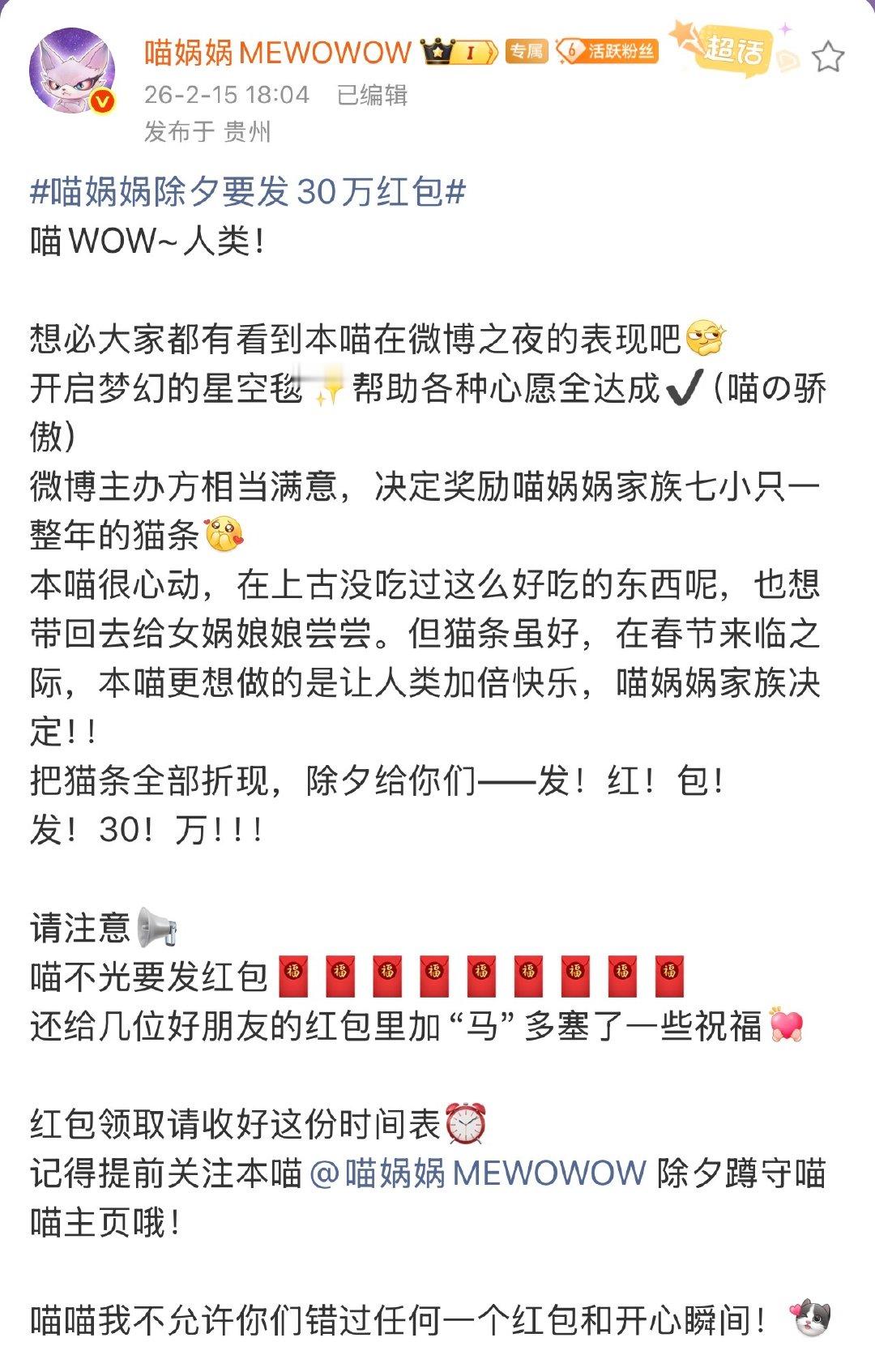 喵娲娲红包送完你的送你的 全网最大方的猫出现了全网最大方的猫实锤了!30万红包说发就发,还给好朋友的红包里“马”多塞了祝福,新年必须跟着喵神走🐎