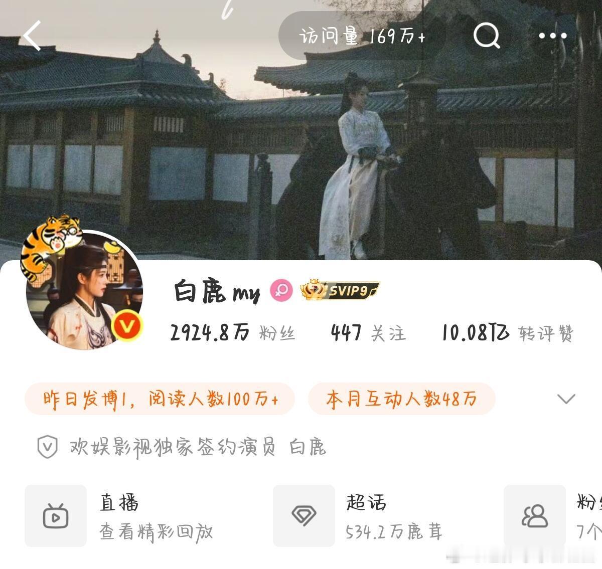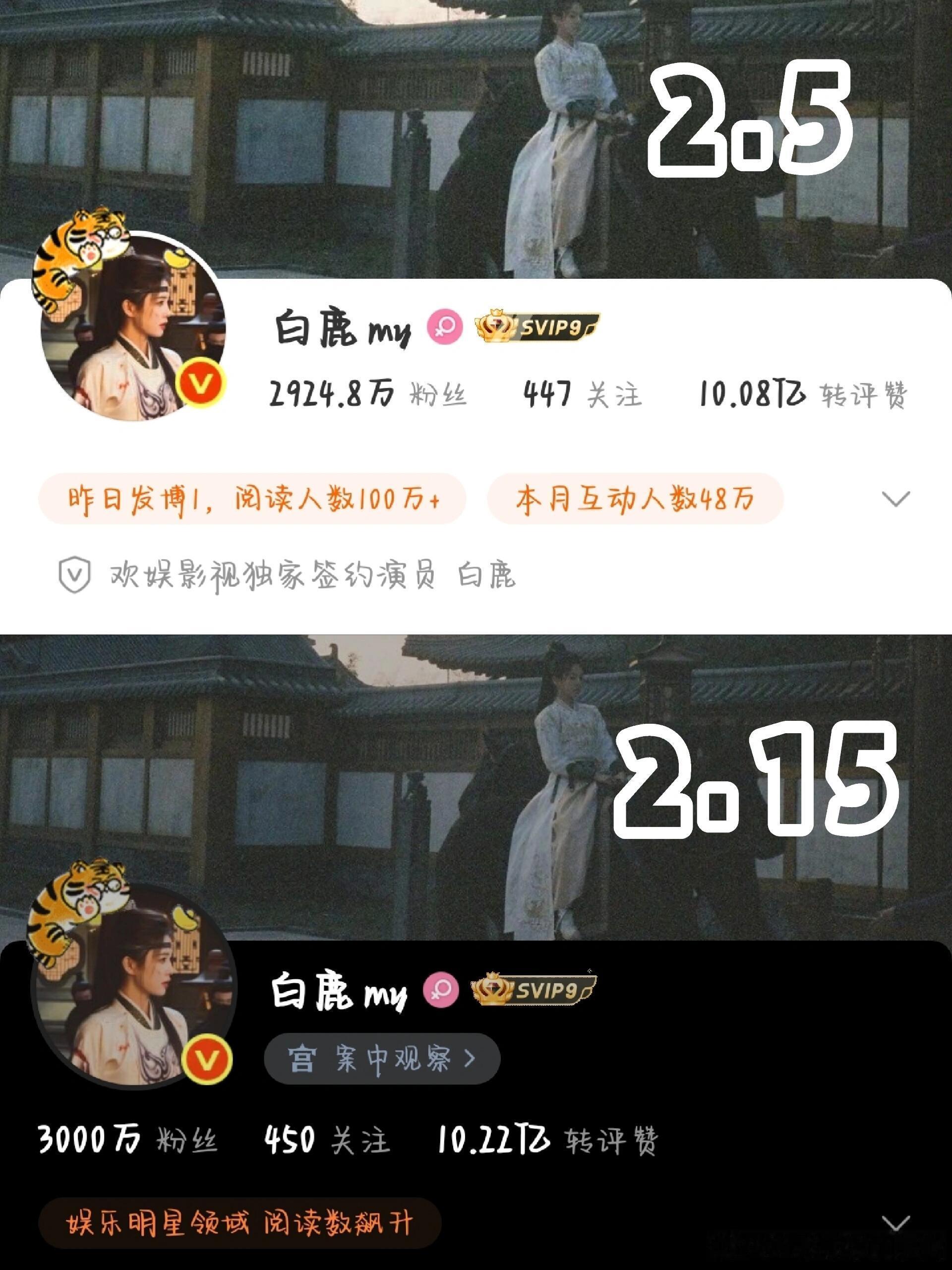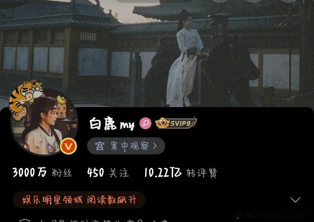白鹿《唐宫奇案》开播10天,涨粉75.2万粉丝突破3000万 👍有效播剧