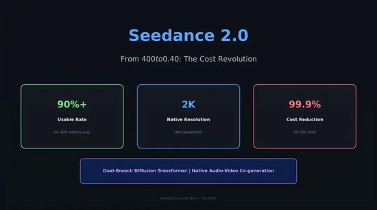 2026年2月,字节跳动旗下新一代视频生成大模型Seedance2.0正式上线,几乎一夜之间席卷了全球科技圈与影视圈。这款中国自研的模型,彻底打破了AI视频生成长期以来“可用率低、落地性差”的行业痛点,把AI视频的成片可用率从行业平均的20%直接拉到了90%以上。