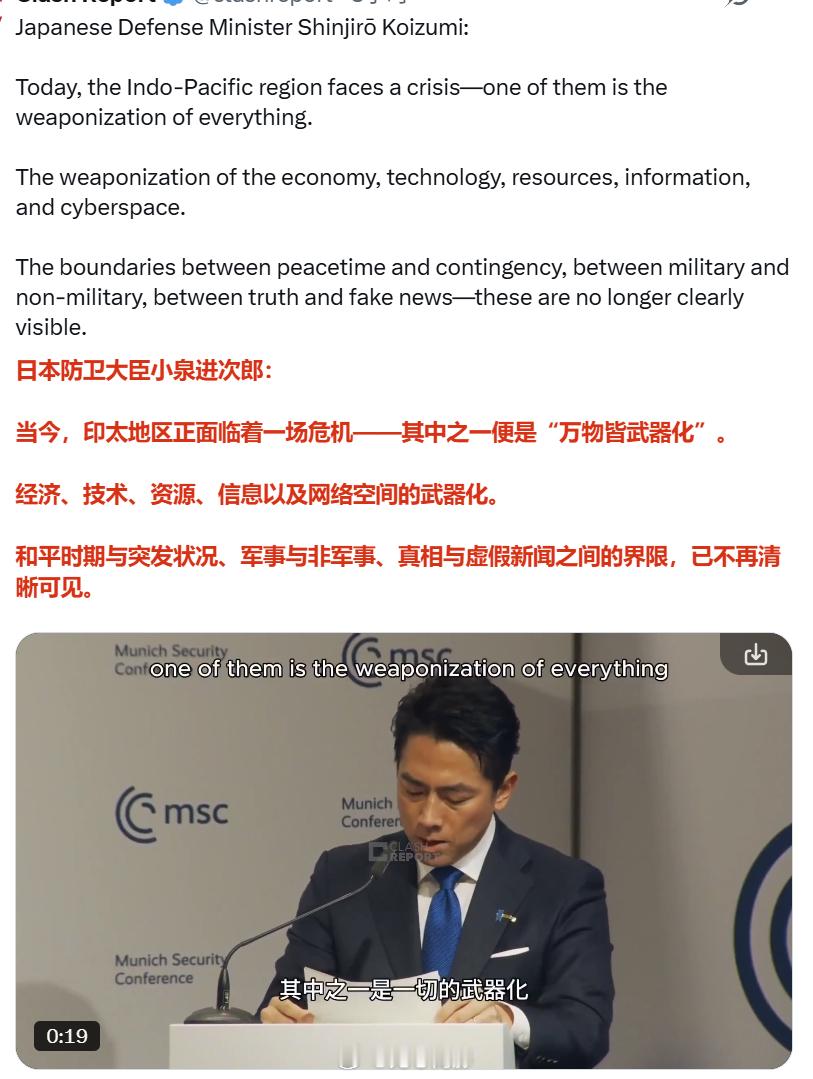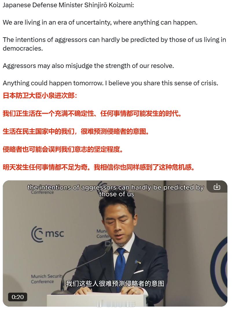 中方在慕尼黑安全会议上严厉警告日本日本之后,日本外务省刚才又在哈气了,称我们说了“不当言论”,不但极力为自己的军事扩张狡辩,还倒打一耙指责中方。此外,日本外相茂木敏充,日本防卫大臣小泉进次郎等都蹦出来或反对,或阴阳怪气——充分展示了他们外号不打不舒服斯基的本质。现在看到日本这群小丑的表演大家也别急,要给他们再多点空间,这样他们才能跳得更高,说老实话,目前这点程度我还是挺失望的。