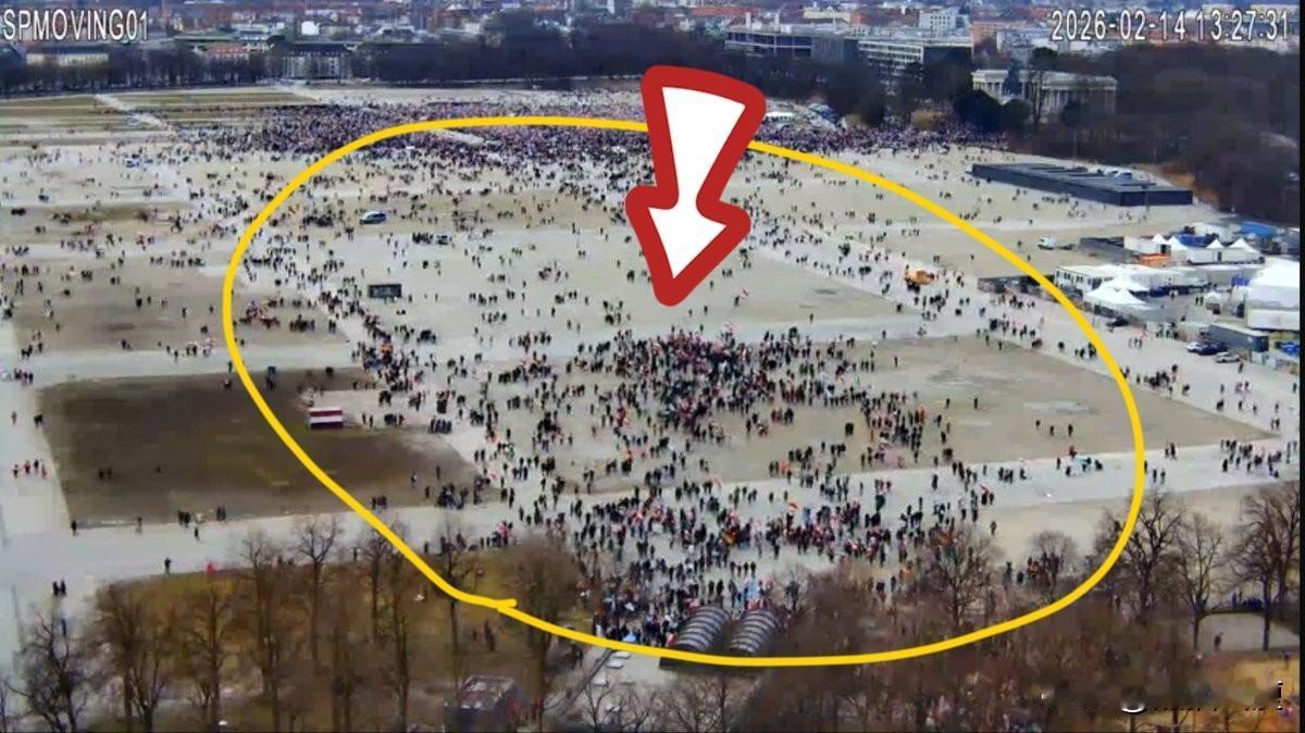 美国主流媒体宣称德国慕尼黑现在举办的全球峰会会场外,【有20w伊朗人在抗议伊朗】…… 由于给的全是贴脸型近距离镜头,附近有驾驶无人机的好心人放出了这20w人队伍的广角镜头。 这广场在慕尼黑的特蕾西娅草坪,最高能容纳25万名观众。就这个人流的稀疏程度,大概也能估算出实际到场人数,还要刨掉凑热闹、路过的数量。嗯,看照片这到场人数能有2万,组织者都能笑哭喽。