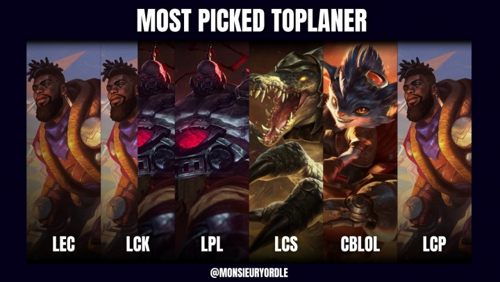 外媒统计各大赛区最多出场中单英雄:中韩都爱选塞恩,奎桑提大热