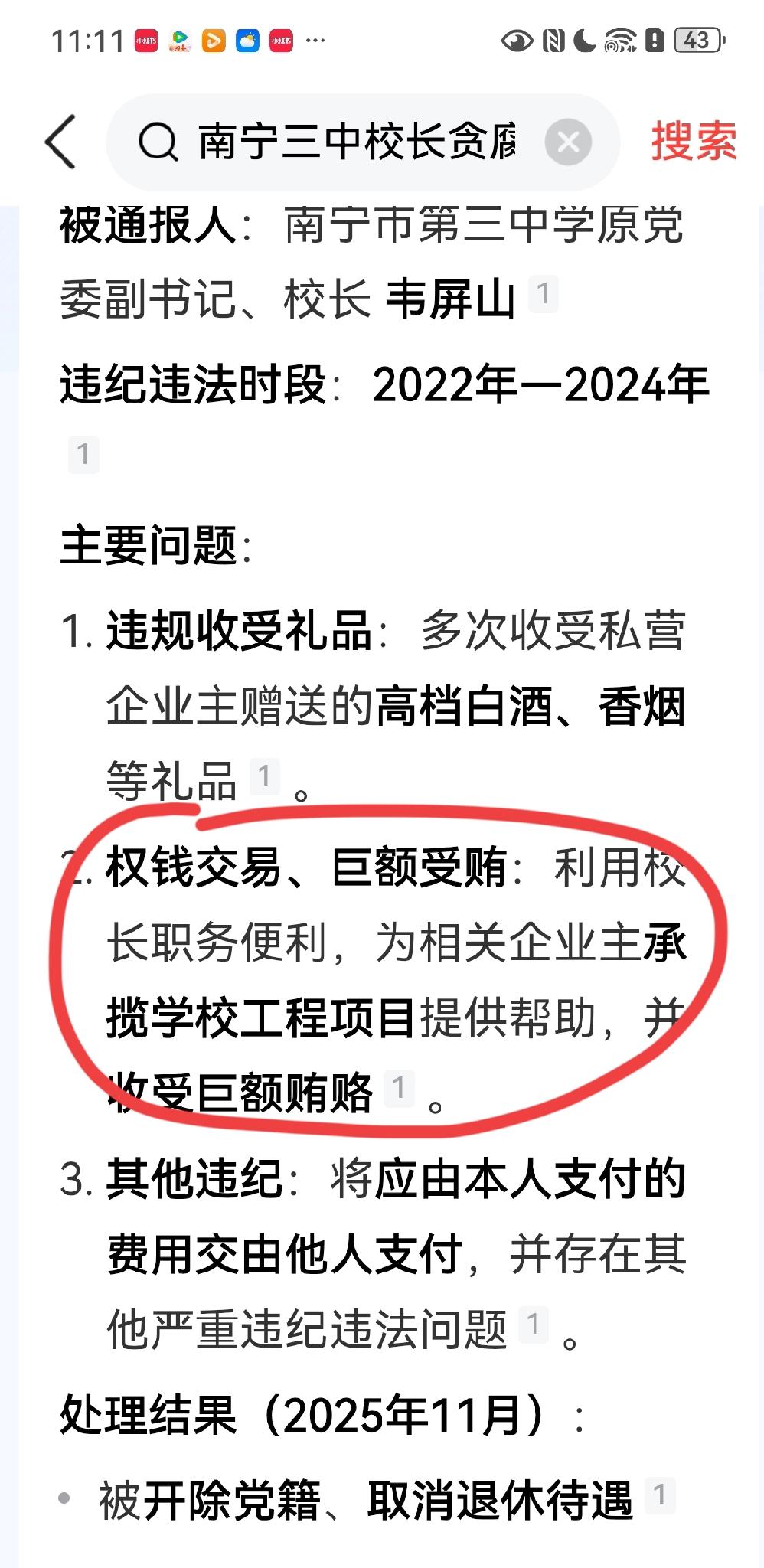 前几个月还是人人敬仰、德高望重的南宁三中校长,几个月后就变成阶下囚,这很令人震惊! 我们知道官员腐败的不少,也知道医院院长贪腐的存在,我们很难接受高中校长沦陷,这样的校长如何做好教育工作?孩子们未来的信仰在哪儿?