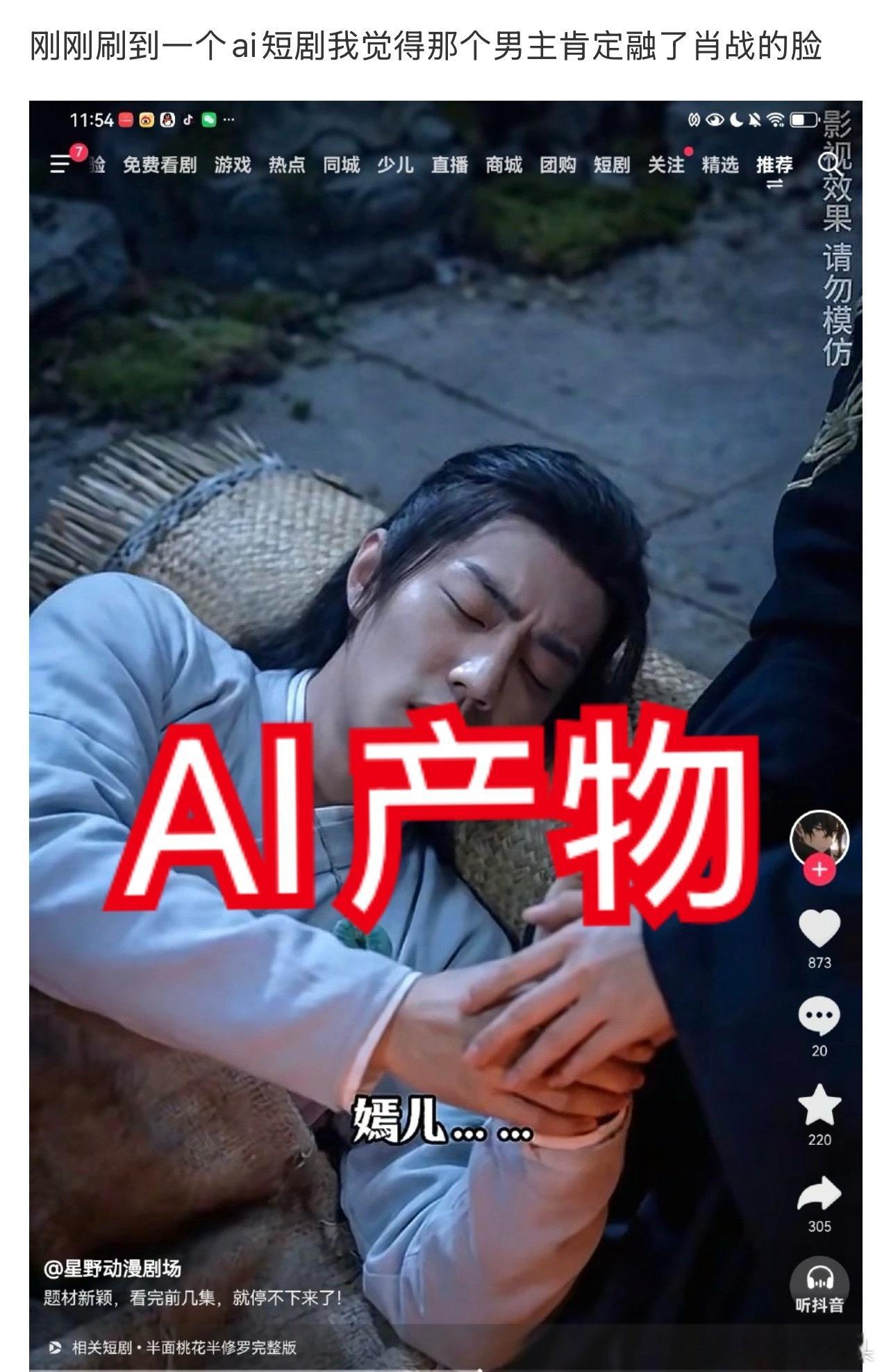 最近怎么那么多用肖战的脸AI生成的短剧和短视频啊!严重侵犯肖像权和明星的商业价值了!