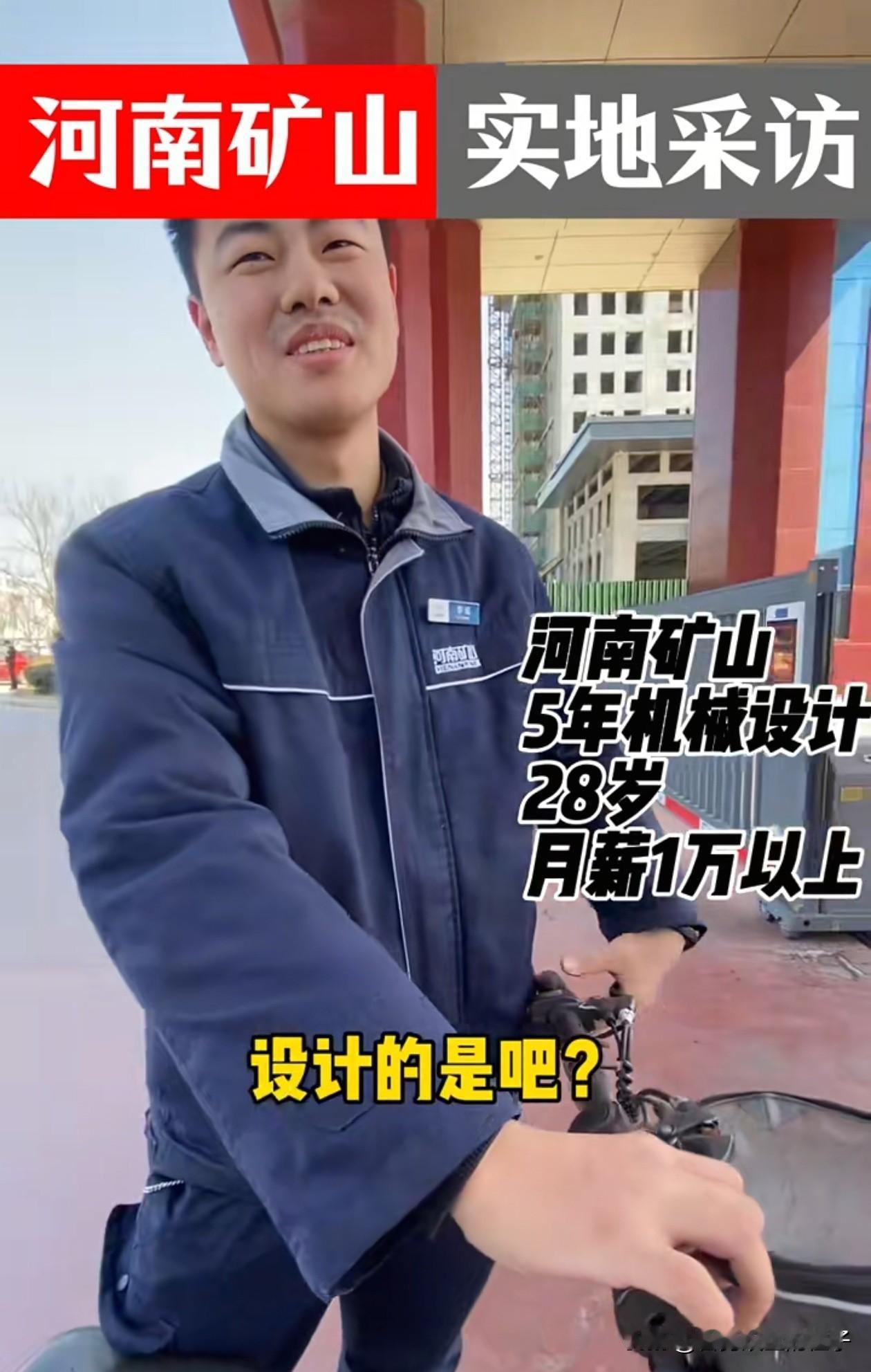 河南矿山的普通员工1个月能多少钱? 第1位:19岁的小伙子,刚入职不久,目前还是新手阶段,每个月大概有7、8千块钱,小伙子说,公司不要求加班,如果愿意多干就能多得,想休假说一声就行,有和他一起入职的同事,多加点班每个月能拿接近1万。 第2位:28岁的工程师,入职矿工已经5年,从事技术工作,基础工资和绩效要比普工要高不少,但大哥没有透露具体工资数额,只说肯定超过1万了,听语气保守估计应该在1万5左右。 大家觉得这个工资水平怎么样?