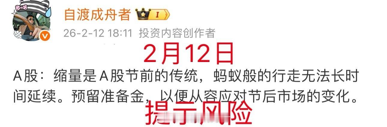 到了2月12日,其观点进一步明确:大盘眼下这种如蚂蚁般缓慢蠕动的走势难以持续,并特别提示“预留准备金”,为应对市场可能出现的变数做好准备——这一提醒直指风险防范。