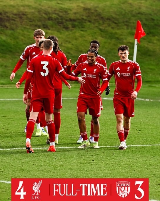 该记者指出:“今天下午在柯克比举行的英超U21联赛中,利物浦U21队以4-3险胜西布朗。恩古莫哈的精彩远射是本场比赛的最佳进球,威尔·赖特、尼奥尼和基利安·莫里森也各入一球。卡尔文·拉姆塞也首发出场。”