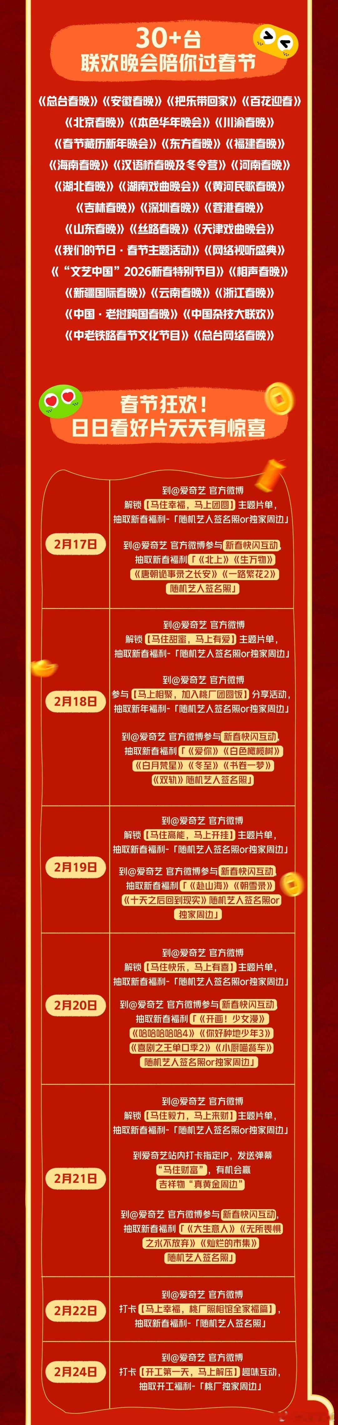 爱奇艺春节预告阵容太夯了 数了数根本数不完!170+艺人组团拜年,90+IP预告连发,30+晚会轮番炸场。从古装大剧到热门综艺,从开年大戏到暑期爆款,这阵容确实太顶了!