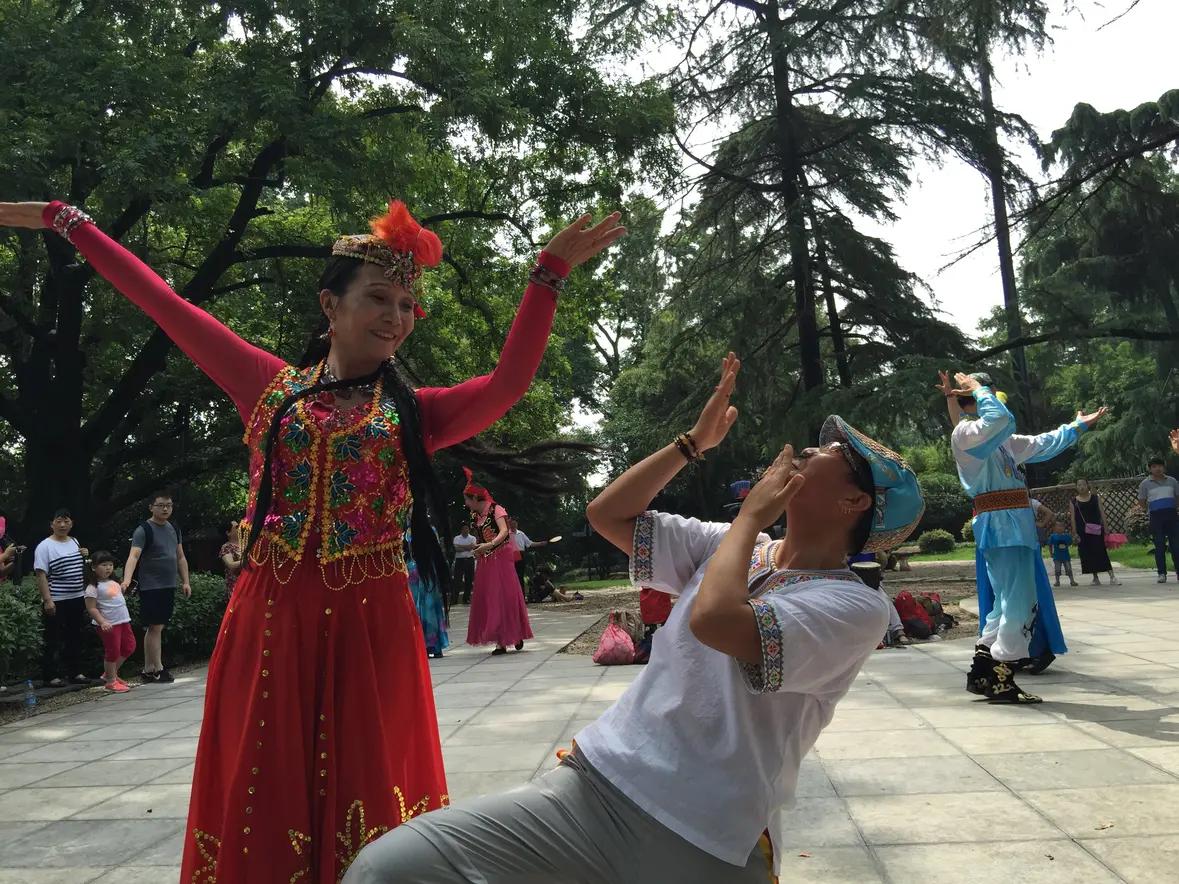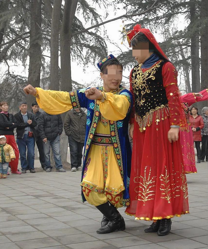 我观察了很久,发现新疆舞最文明,男女即不拉手也不搂腰,只是眉来眼去,互相微笑,看