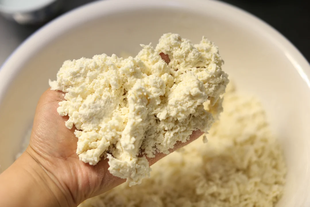 1️⃣:中筋面粉:800克,土豆淀粉80克 3️⃣:食盐:8克,冷水:320克 把材料1️⃣的粉料全部混合均匀待用。 把材料2️⃣的盐以及冷水放入容器中搅拌溶解,边倒入水边用筷子搅拌面粉,都弄成图中的絮状或者揉成团都可以,放入压面机中成片之后大约碾压4-6次,每压完一次就对折一次再压一次,直到压成完全光滑的面片,根据自己的喜好出粗细面条即可。