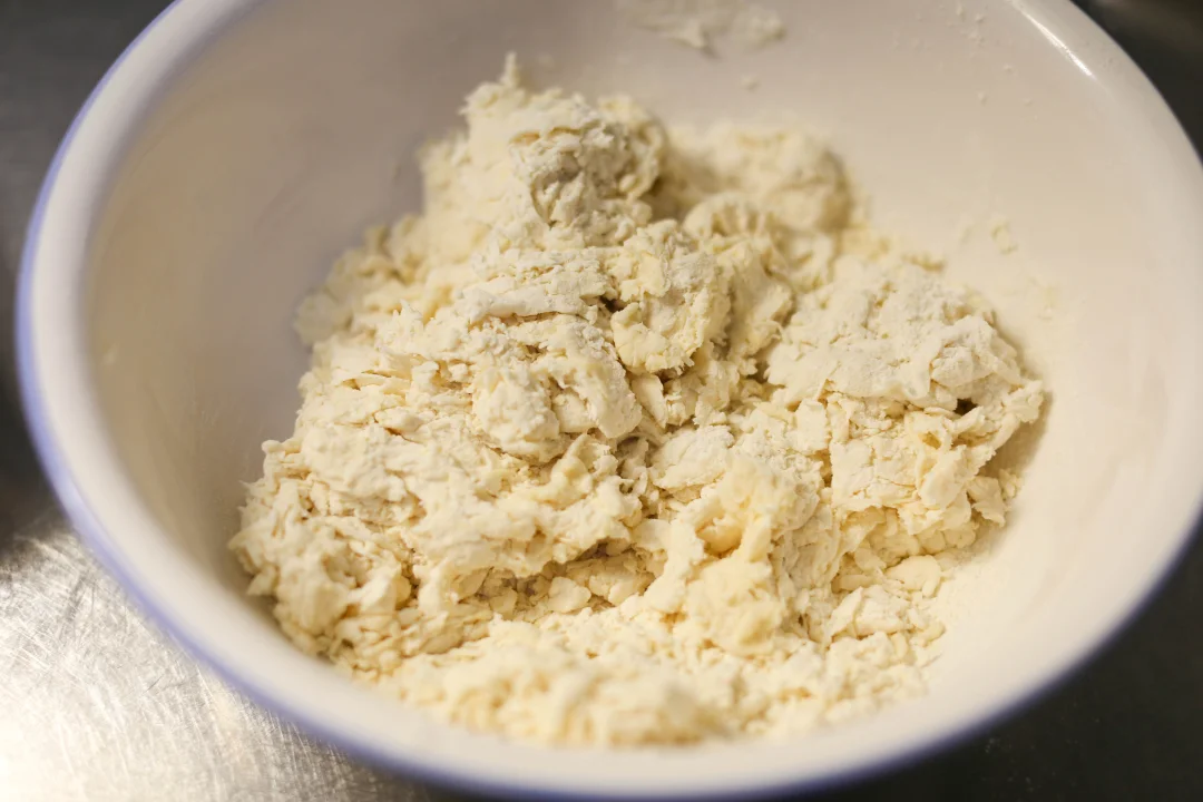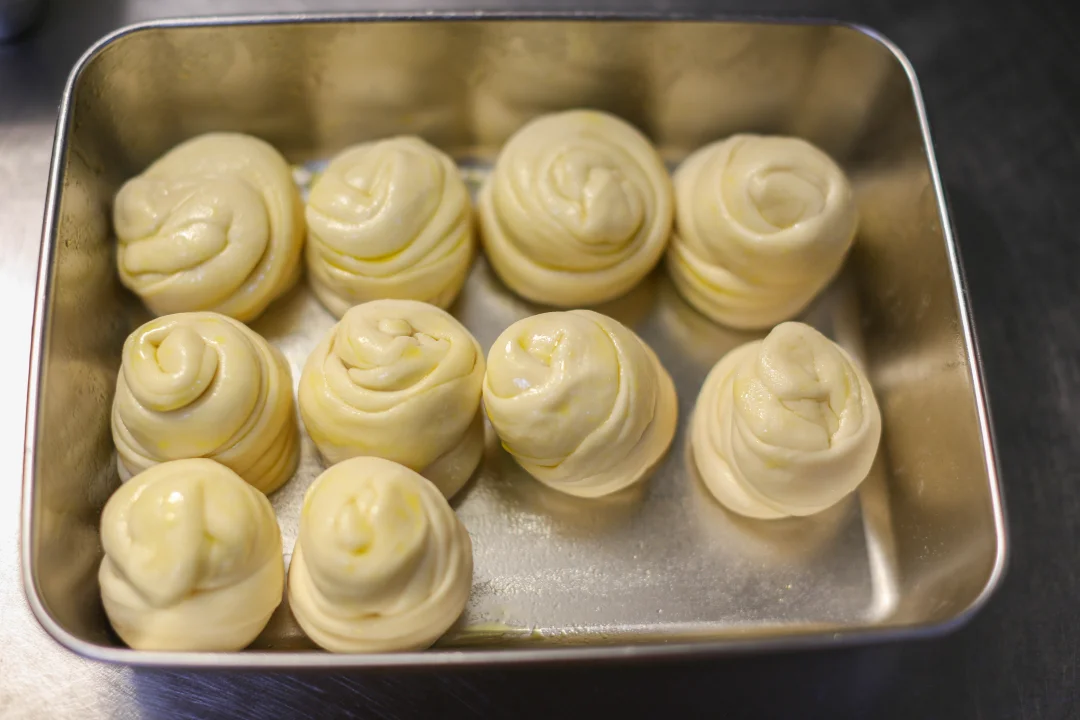中筋面粉—1000克 开水—150克 凉水—360克 鸡蛋一个 第一步烫面 60度以上的开水就可以让面粉糊化,但是糊化的程度不一样,出来的效果和口感还是不一样。最好还是用开水。 开水放入面团中,边倒边搅拌,让面粉糊化。 然后放入鸡蛋一个,放入凉水,和成面团,饧发一会儿。 层次分明 体型较小,表皮酥脆,里面筋道。