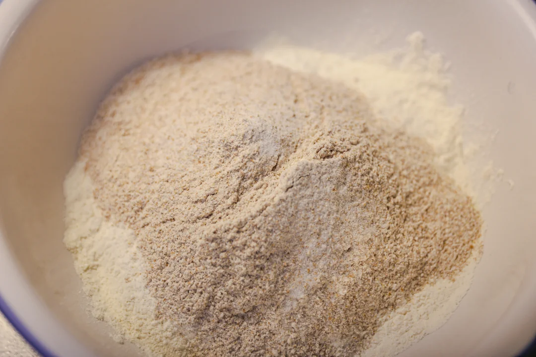 1.全麦粉和中筋面粉的比例是二八比例,这种口感我吃着最舒服,仅供参考。