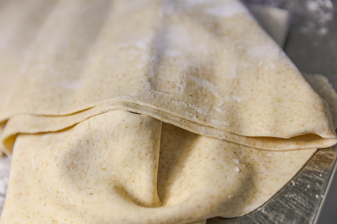 6.最后一遍压制得时候加入玉米淀粉补面,防粘。